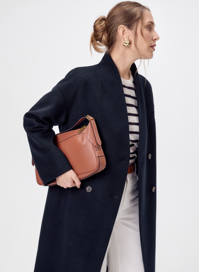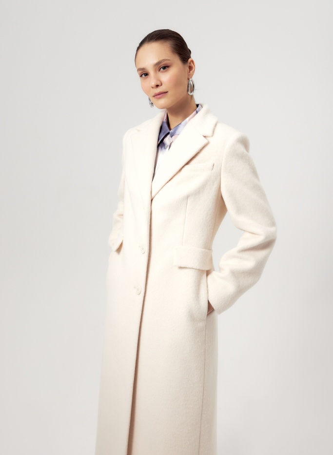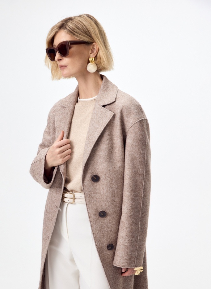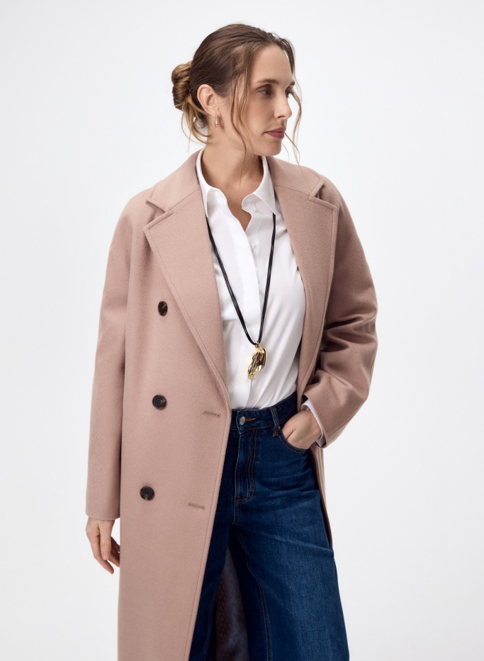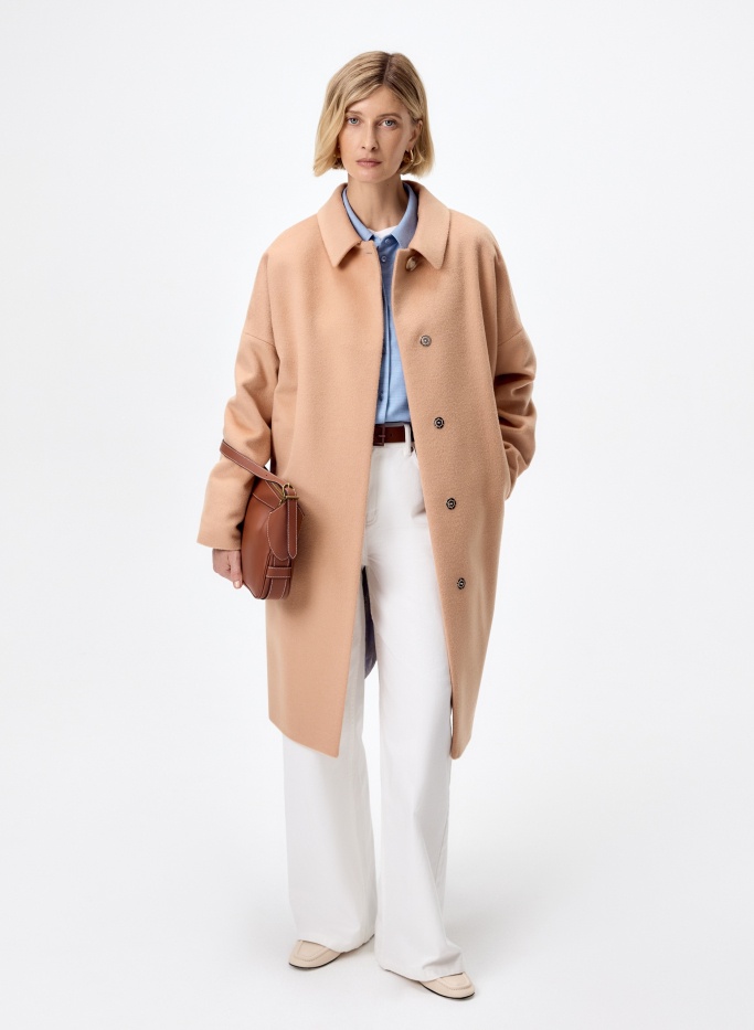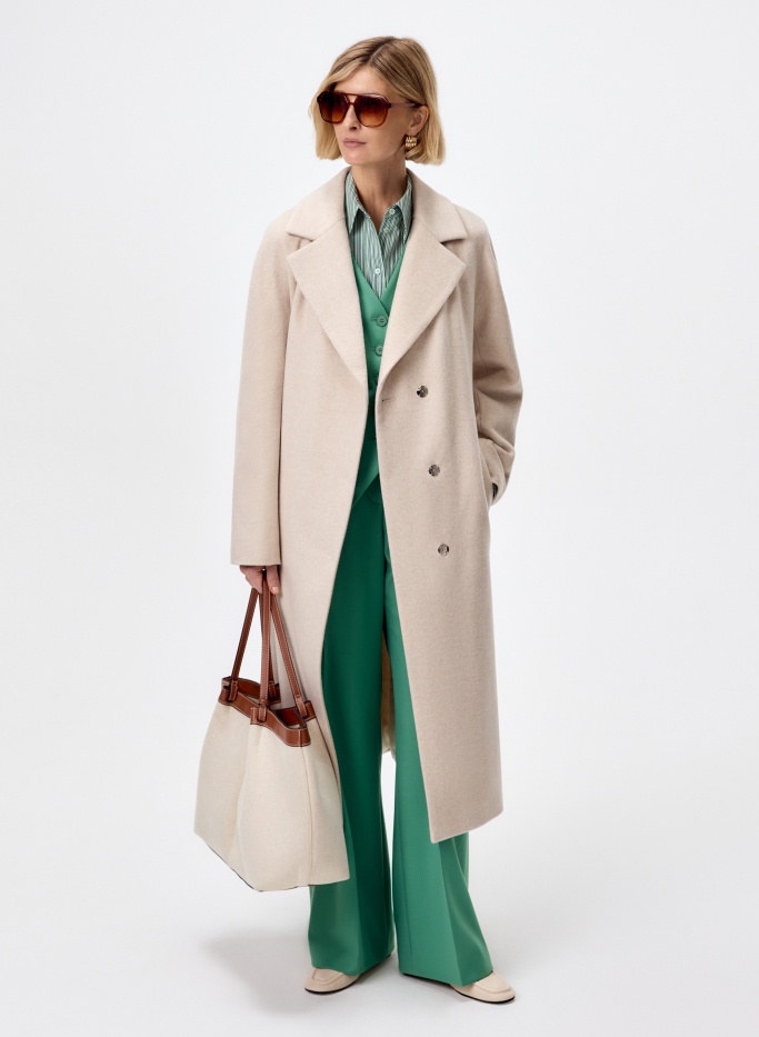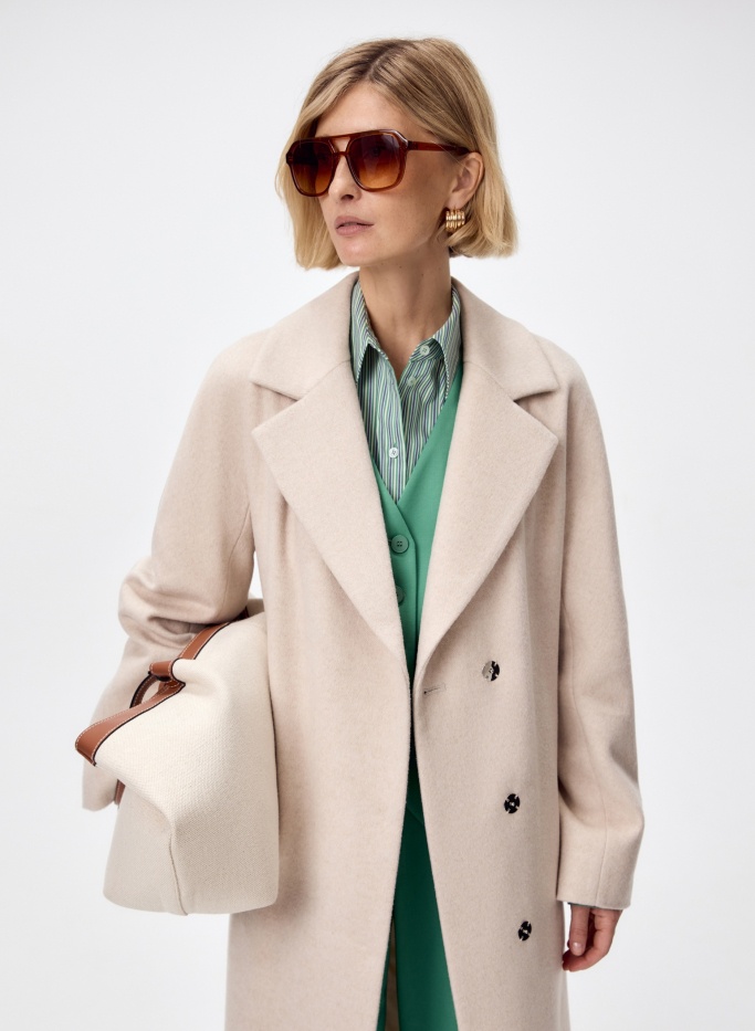 Большое содержание натуральной шерсти в верхнем слое пальто будет согревать даже в промозглую погоду