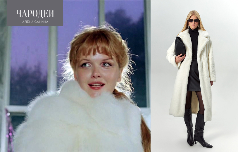Фильм «Чародеи» — культовая новогодняя киносказка, в которой роскошная белая шуба Алены Саниной становится важной деталью облика персонажа и подчеркивает связь героини с миром волшебства. Выбирая