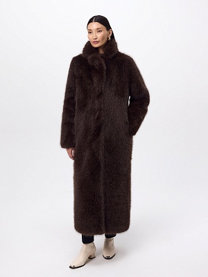 экошубу с длинным ворсом в каштановом оттенке. Дополнить образ помогут крупные украшения, кожаные аксессуары и солнечные очки в массивной оправе.