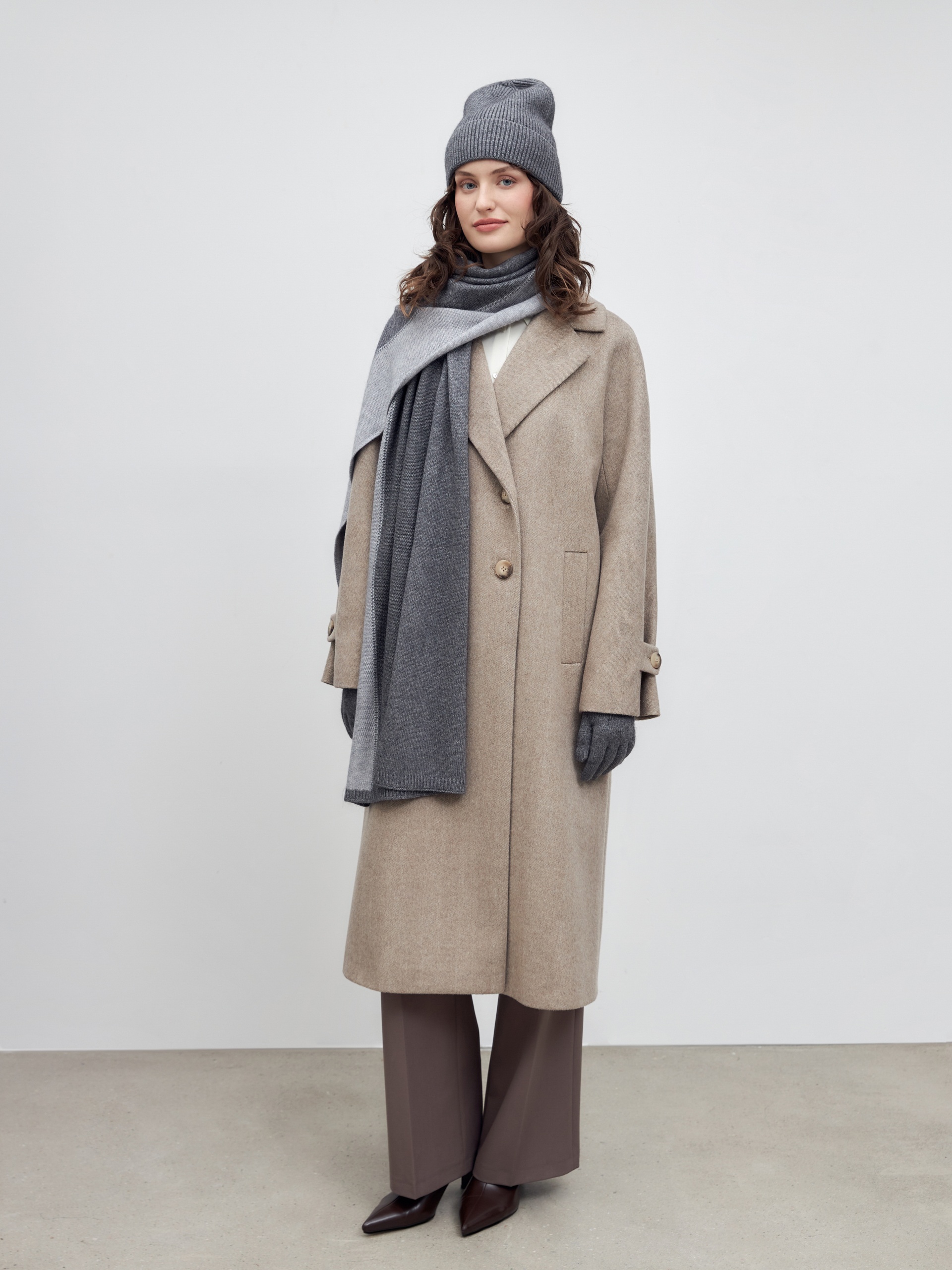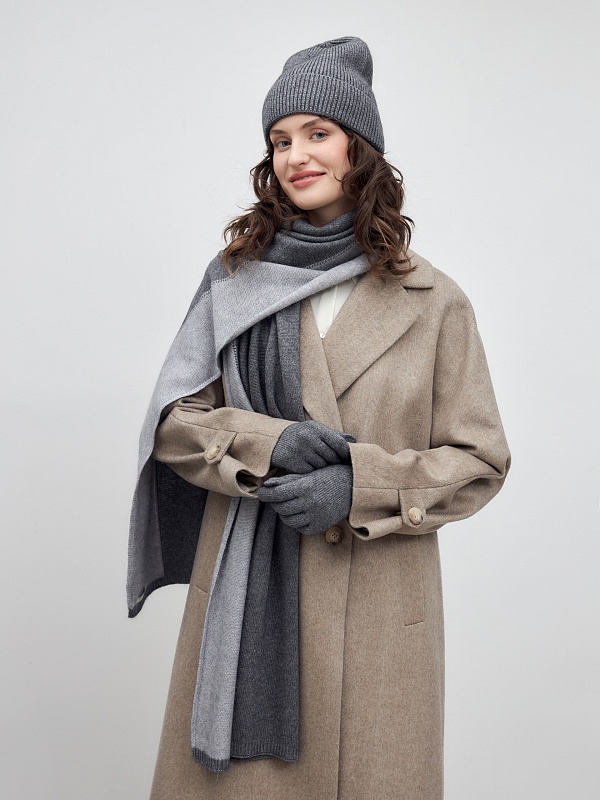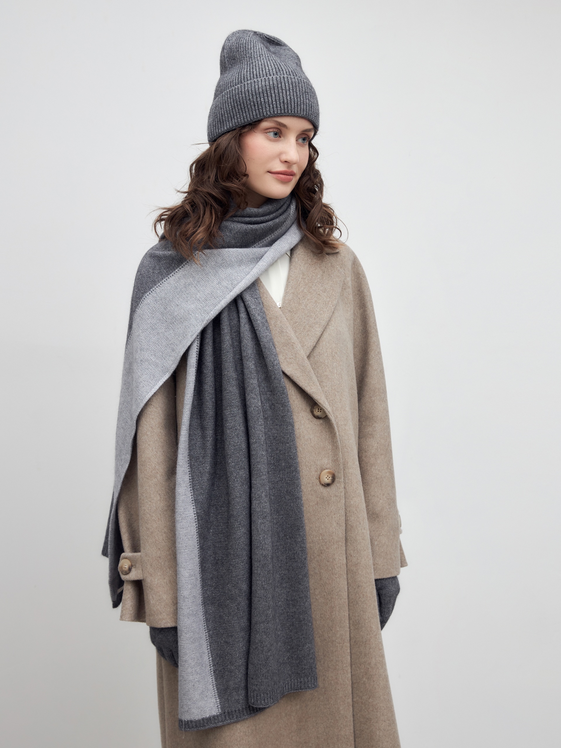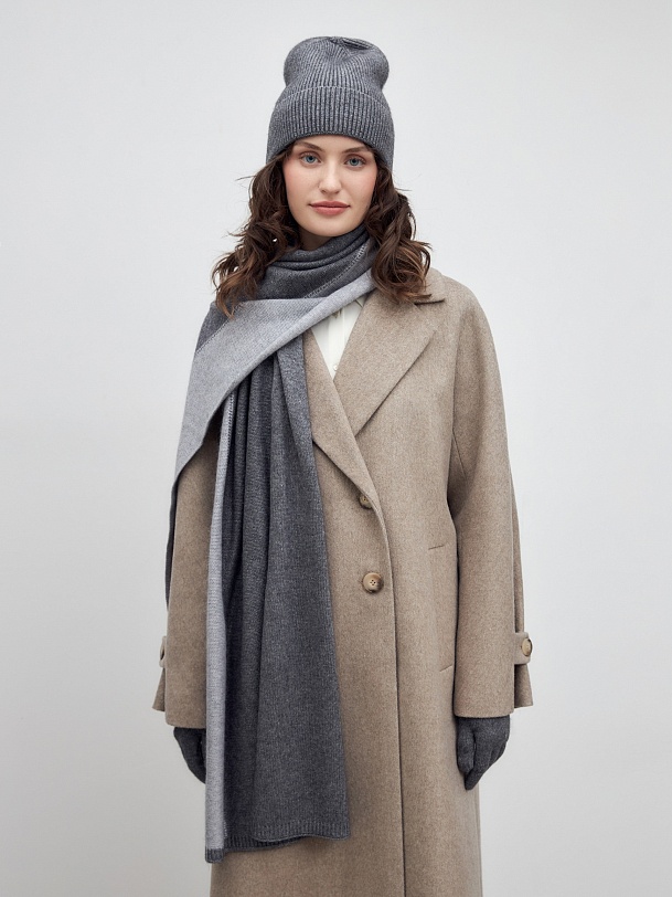Длинный широкий шарф из тёплой и мягкой пряжи с содержанием пуха ангорского кролика. Изделие имеет достаточную длину, чтобы полностью обернуть им шею, плечи и грудь. Шарф имеет уникальную модную расцветку в виде сочетания полос ахроматических цветов разной ширины. Такой шарф подойдёт к любому образу с нашими пальто и станет незаменимой базовой вещью в Вашем гардеробе.