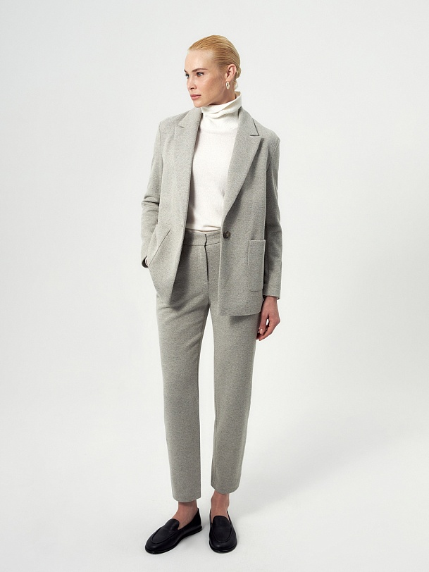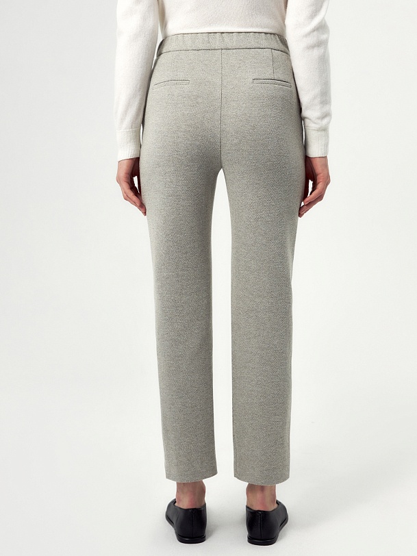 Прямые брюки с резинкой на поясе/спинке и мягкими стрелками, из трикотажной ткани с эффектом "елочки". Брюки станут незаменимым спутником жакета из такой же ткани.