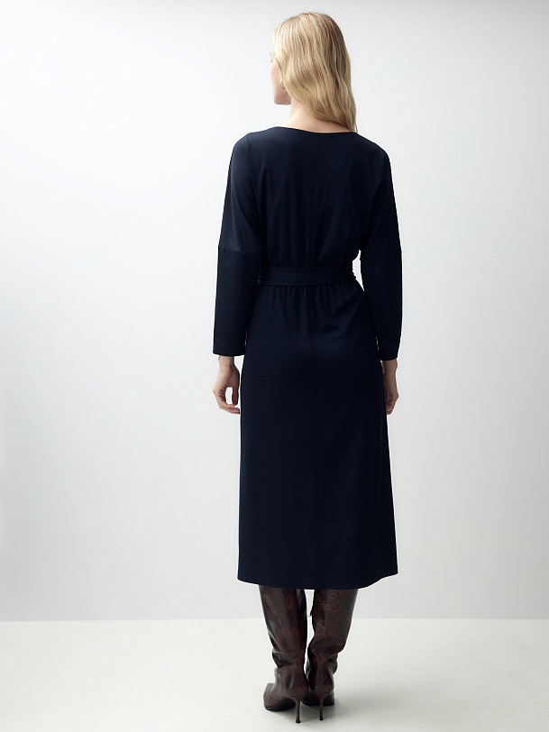 Платье из мягкого и в то же время плотного трикотажа, на эластичном поясе даст вам ощущение свободы движения и комфорта. Актуально в офис при добавлении соответствующих аксессуаров.