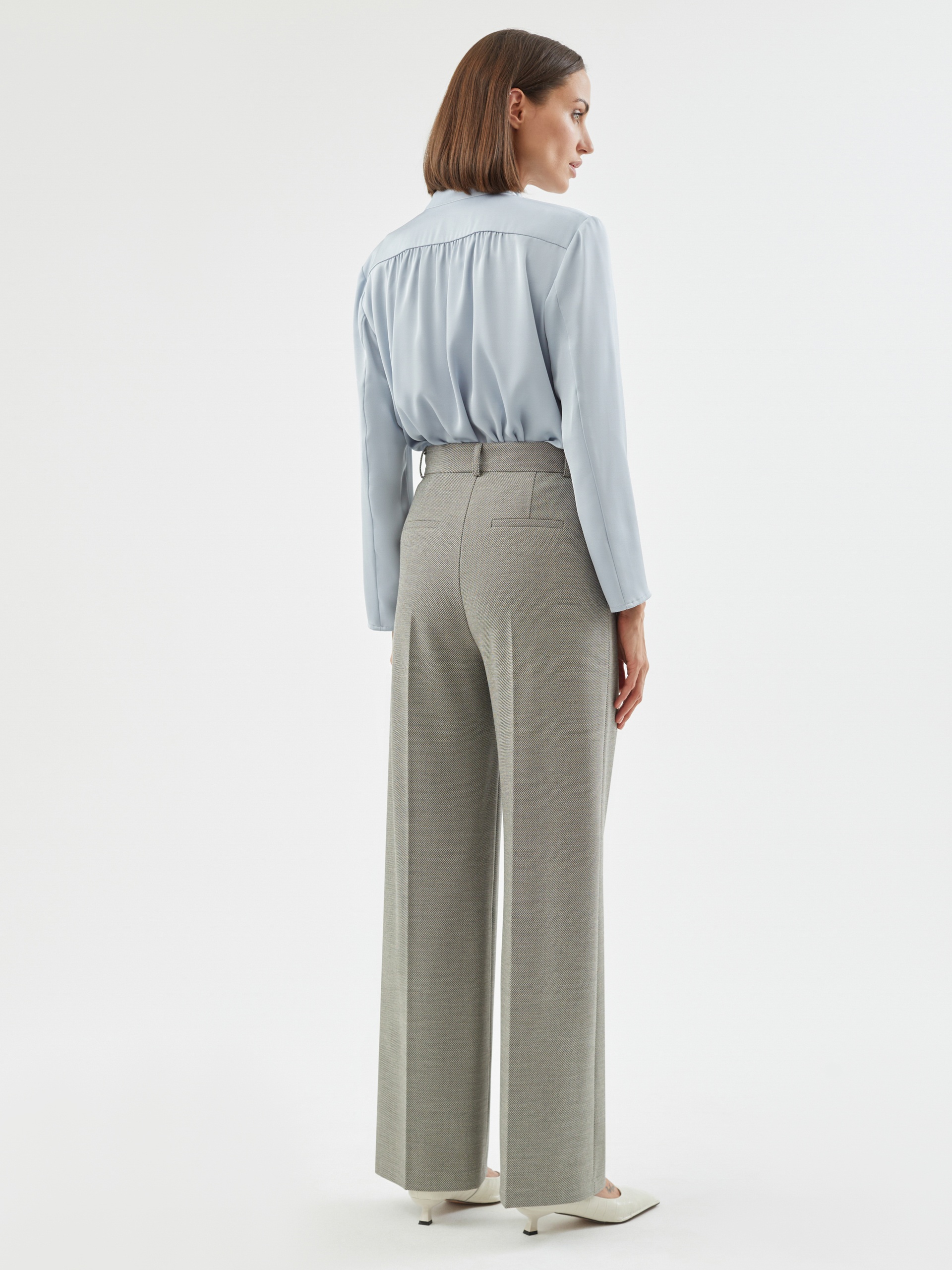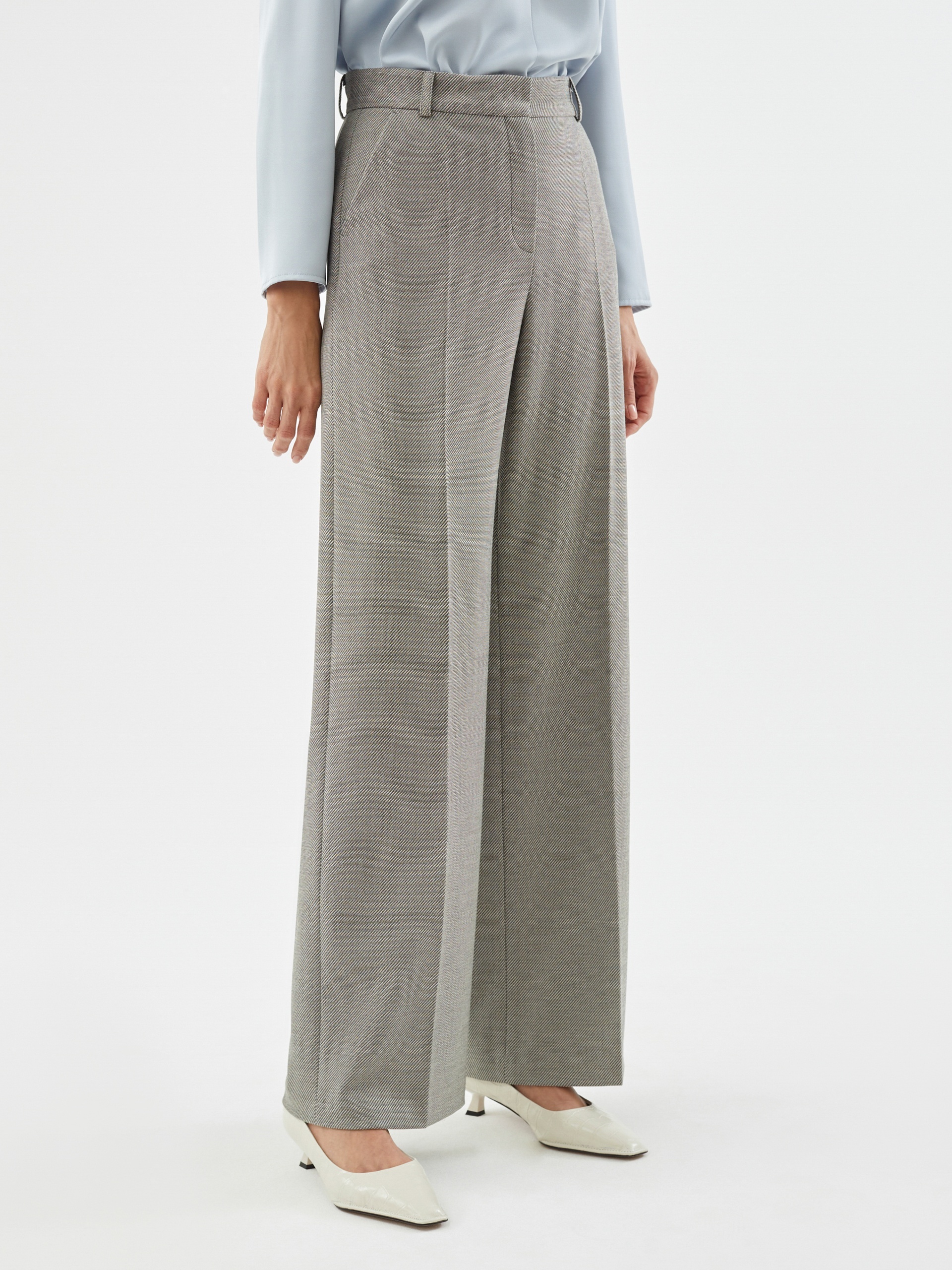 Брюки свободного силуэта из фактурной костюмной ткани