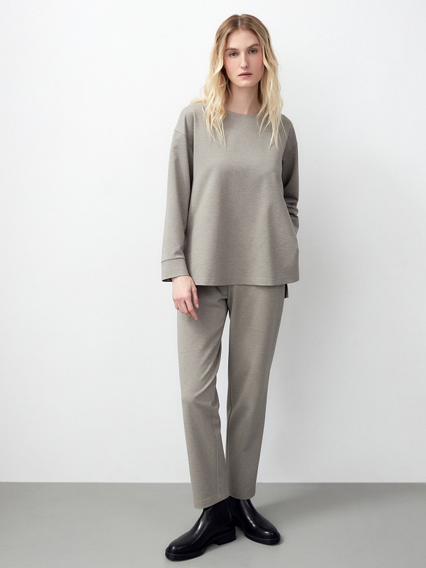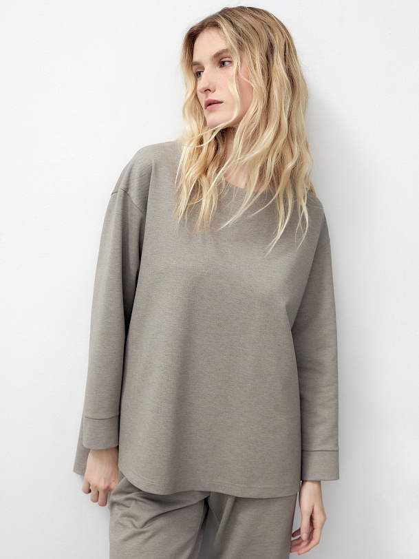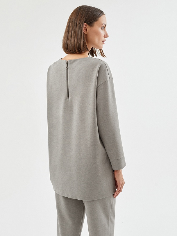 Свободный джемпер из нежного трикотажа с с удлиненной спинкой