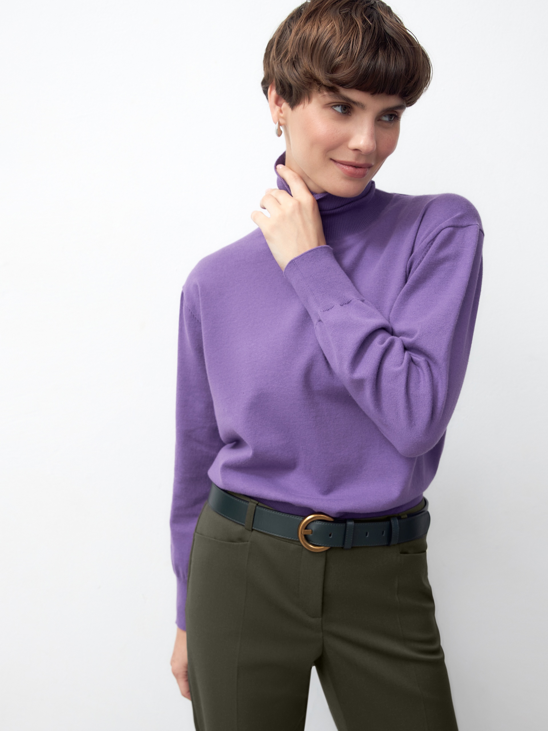 Вязаный джемпер из хлопка достаточно тонкий, чтобы носить ее под жакет, и в то же время свободный, чтобы вам было уютно.