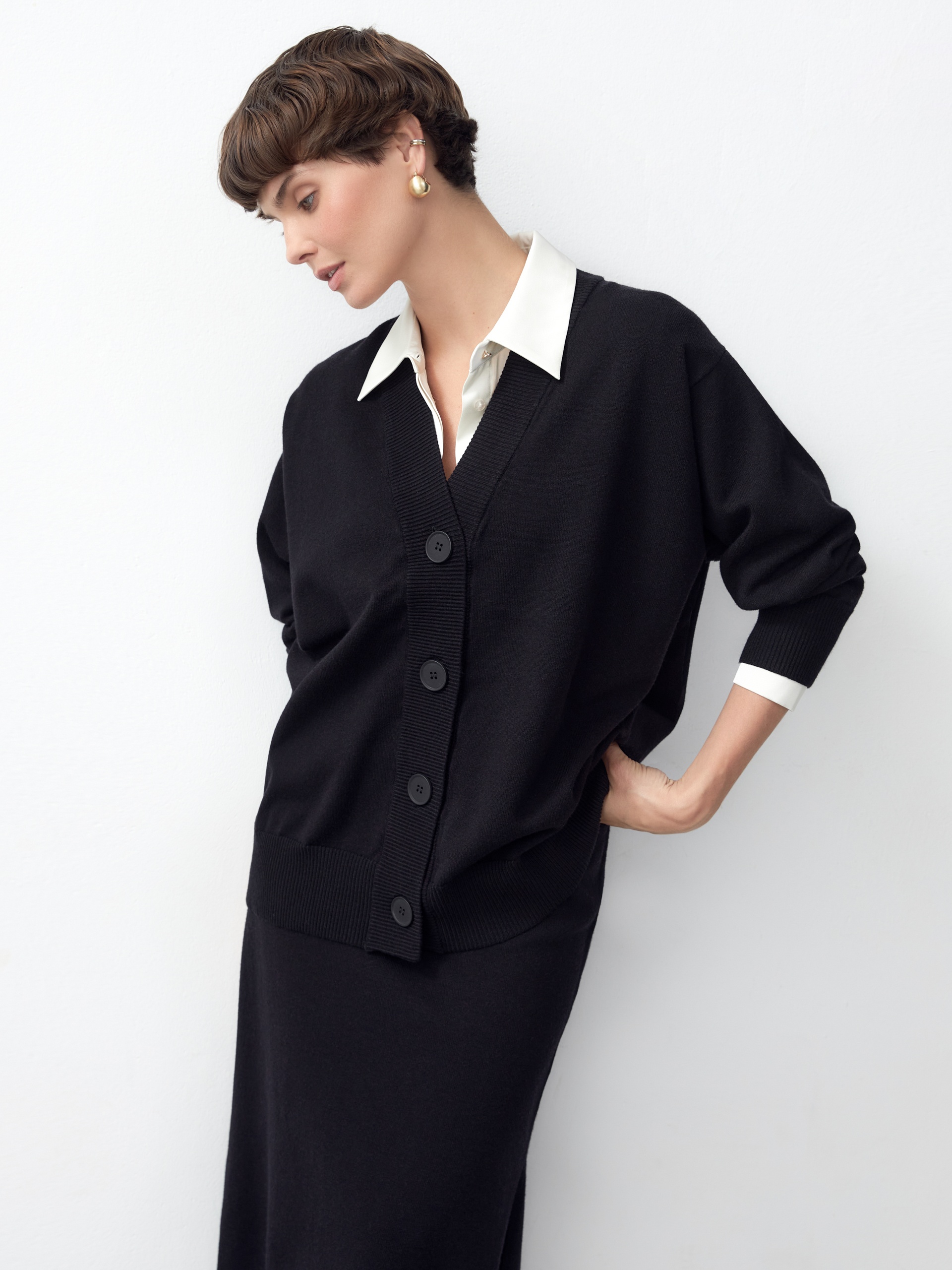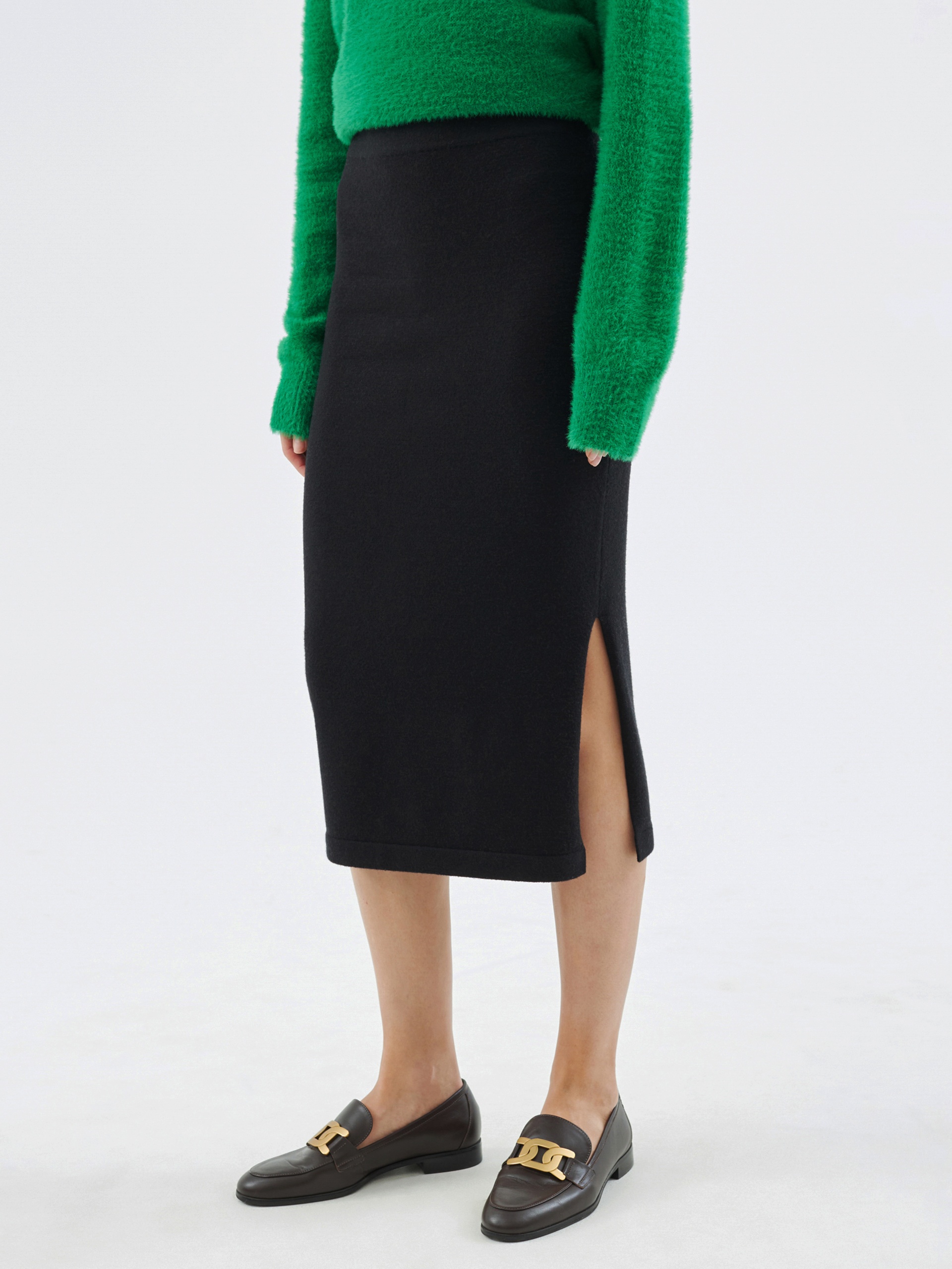 Уютная трикотажная юбка с боковым разрезом - ваш идеальный низ для расслабленных образов с кардиганами, джемперами и топами.