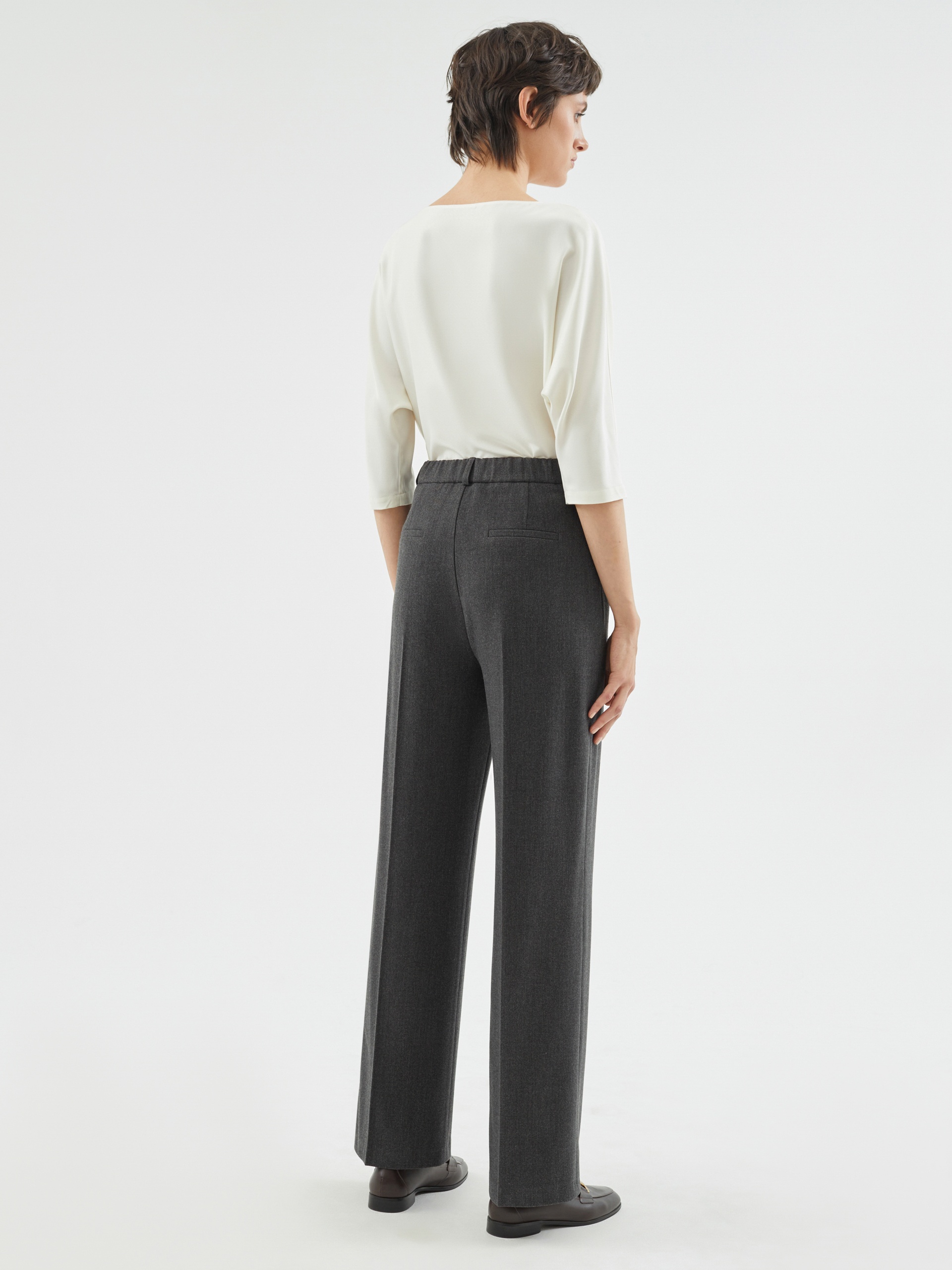 Широкие струящиеся брюки из костюмной ткани на резинке