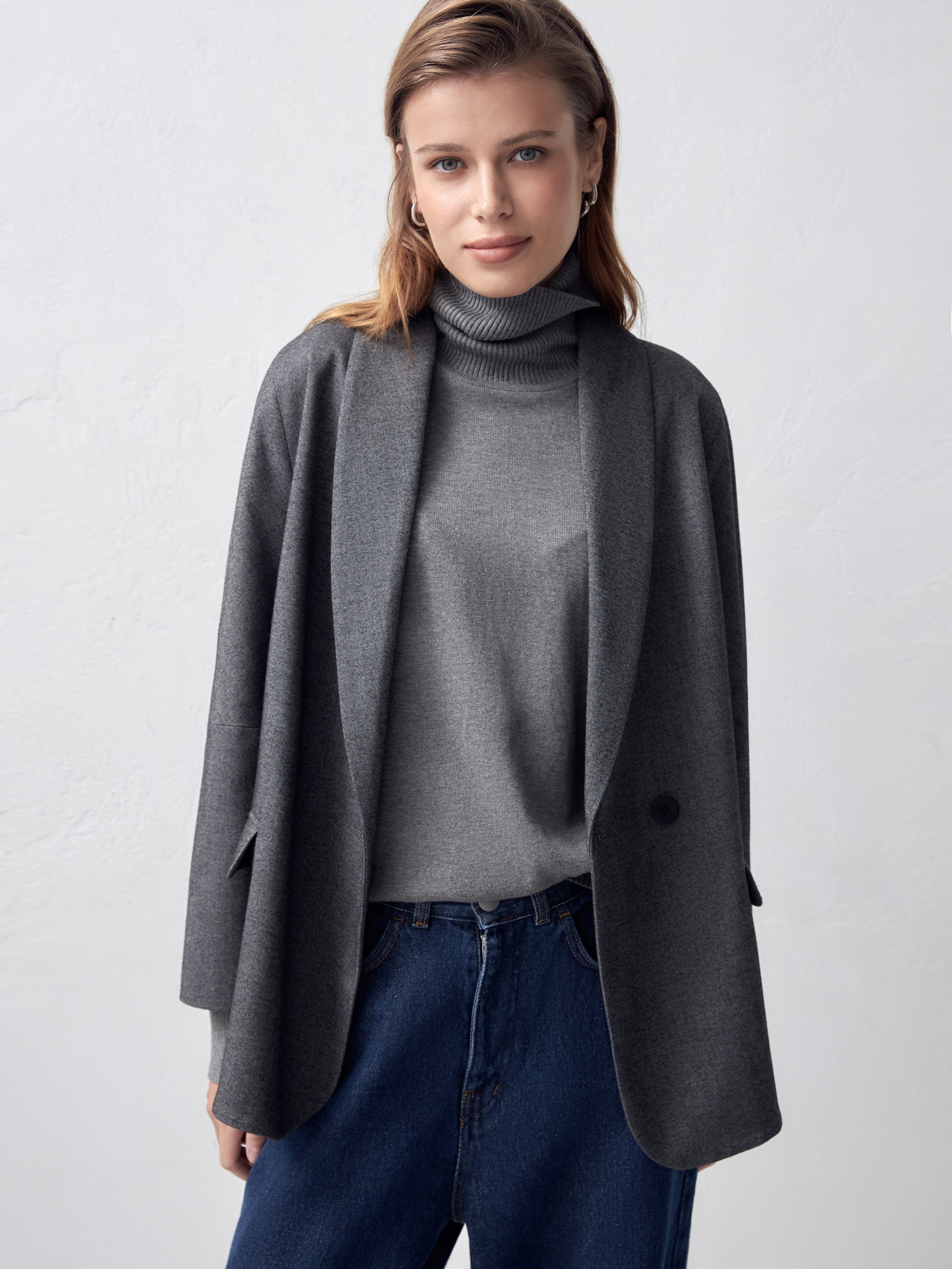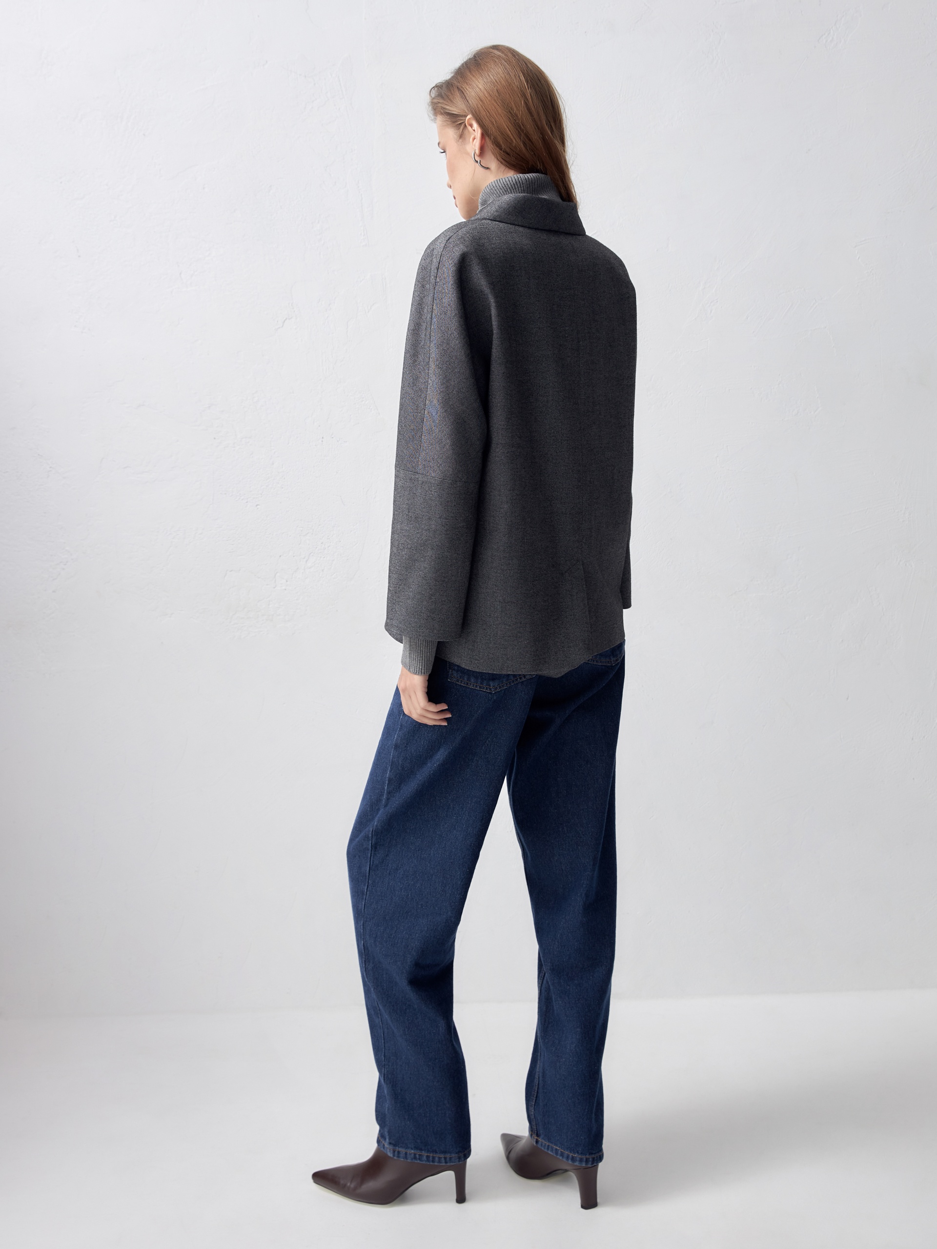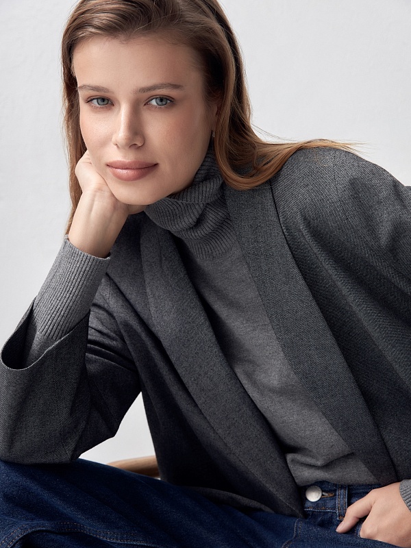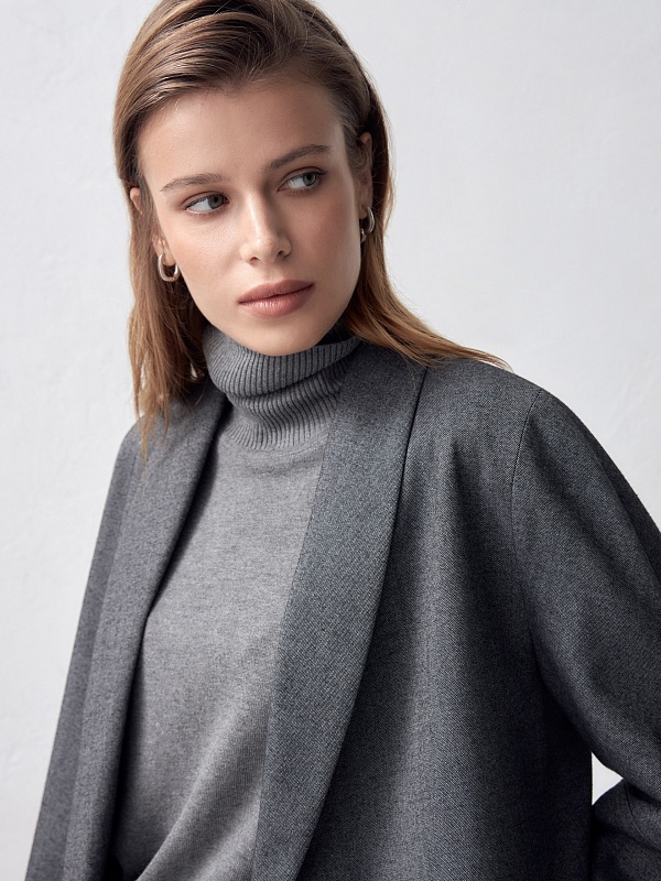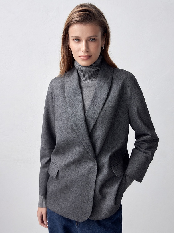 Свободный жакет с воротником-шалька и укороченным рукавом