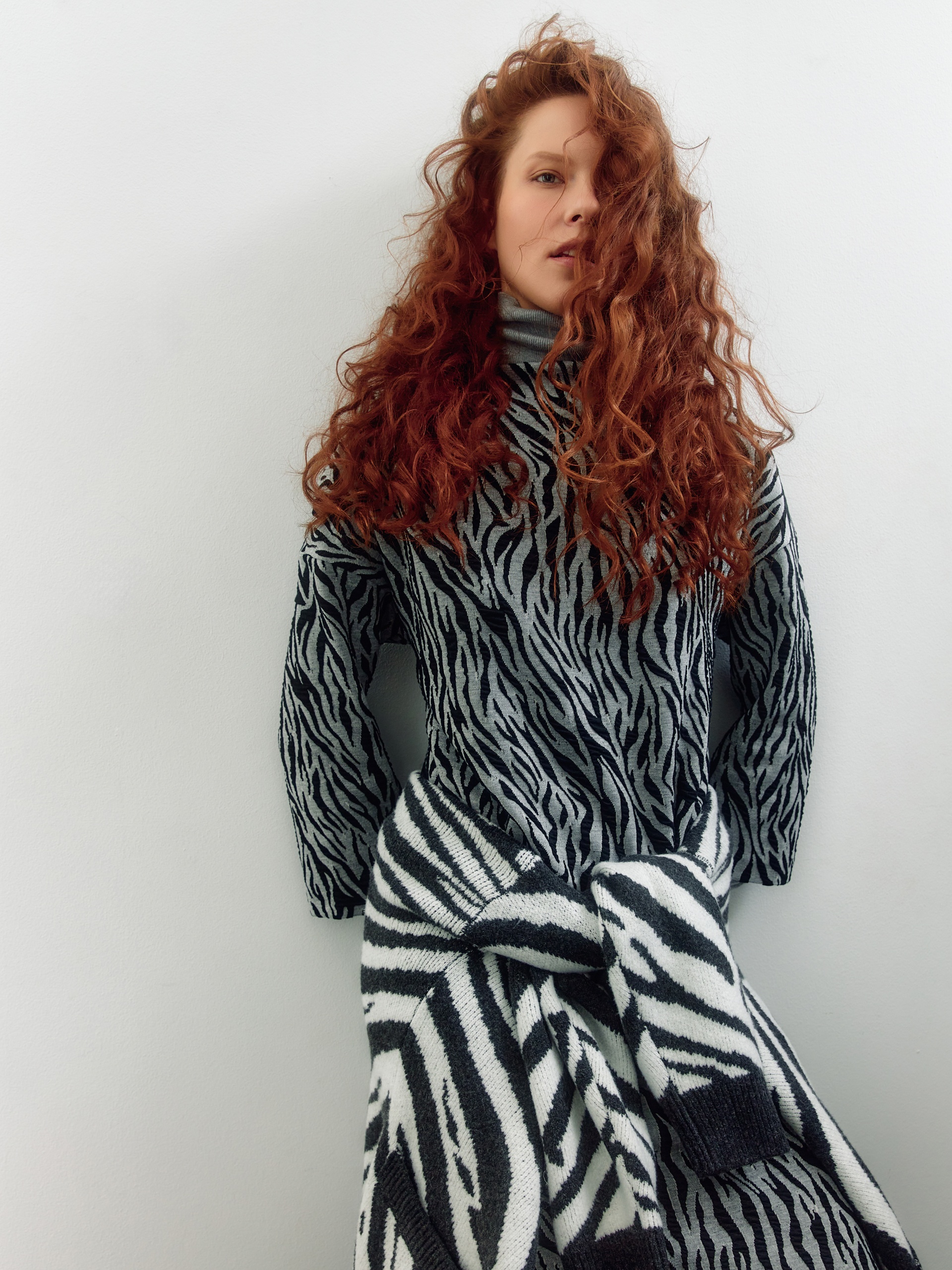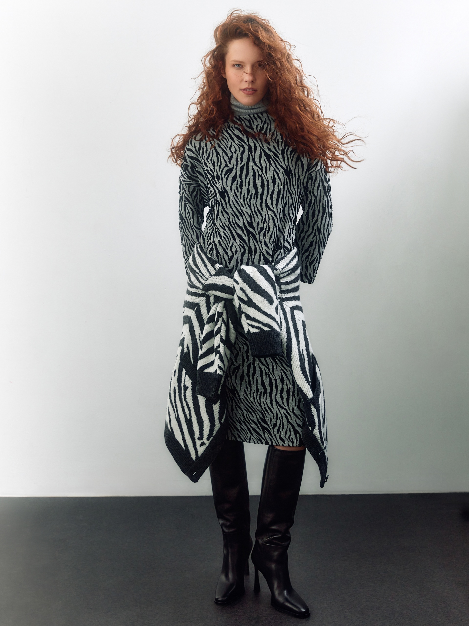 Свободное трикотажное платье в принте "зебра"