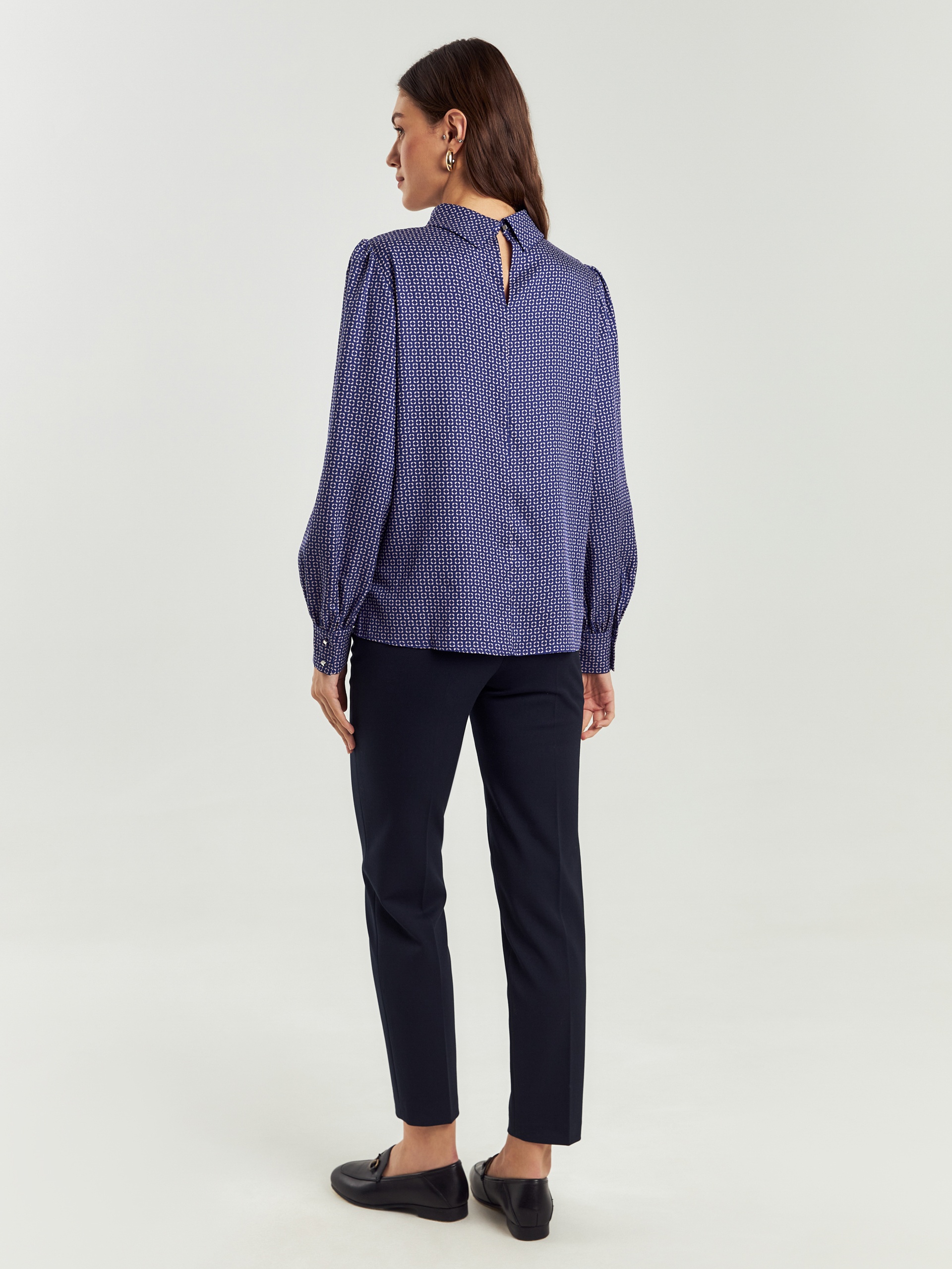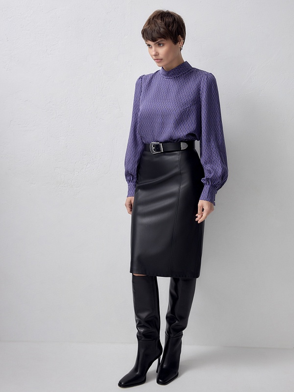 Прямая блуза с воротником-стойкой из 100% тенселя