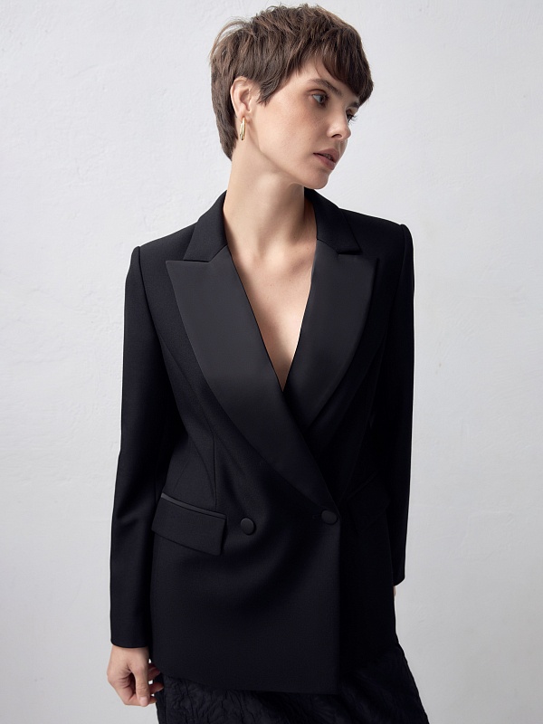Классический двубортный жакет с лацканами из атласной ткани