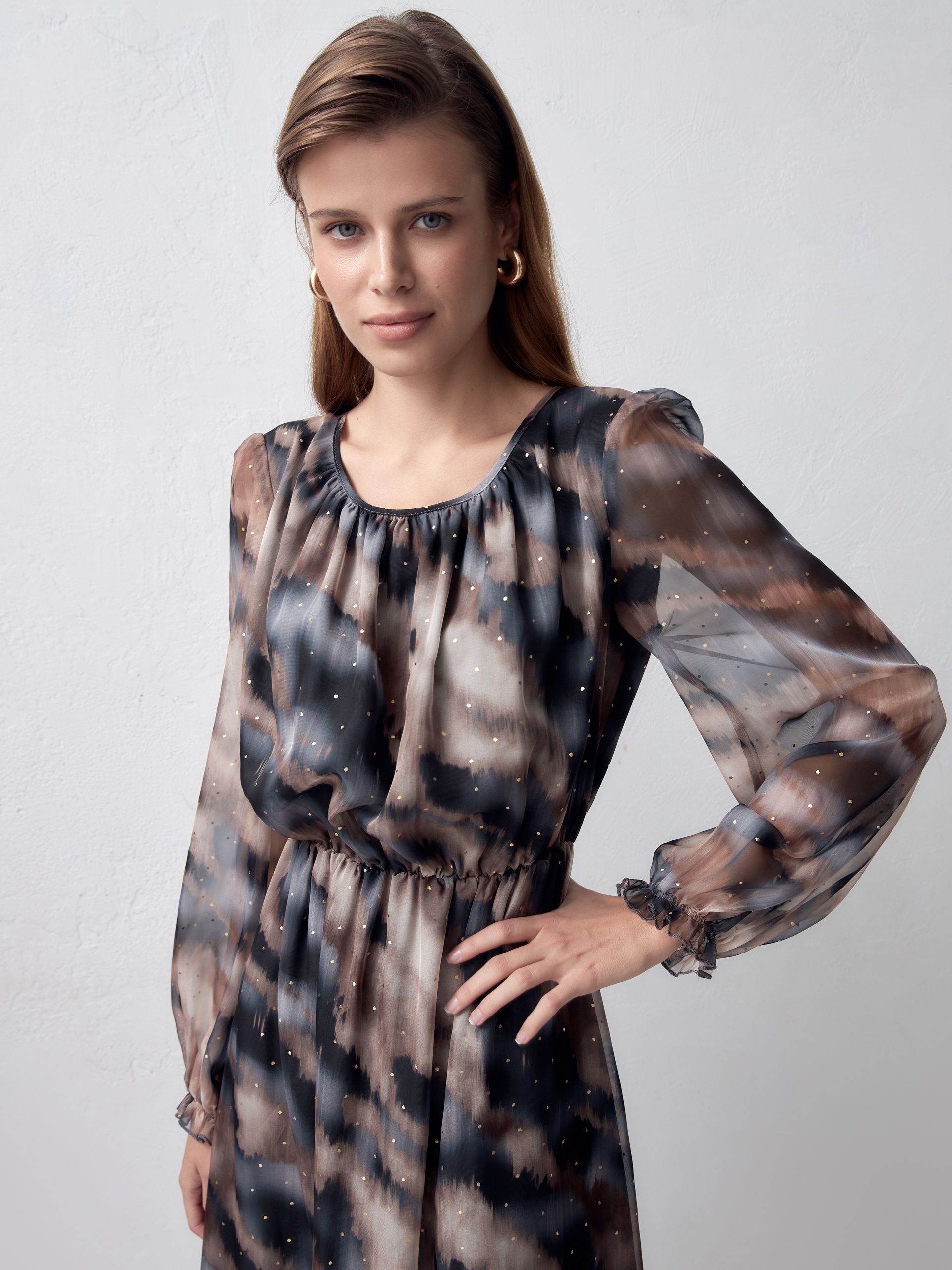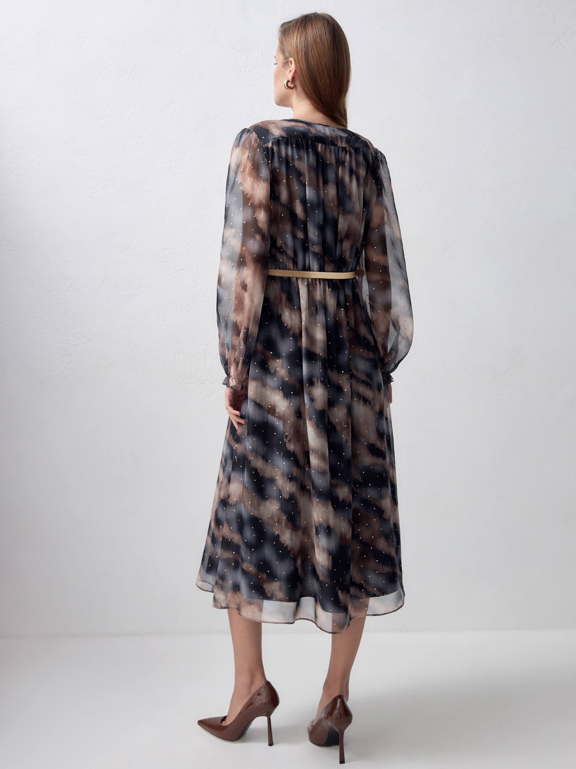 Полупрозрачное платье с металлизированным принтом