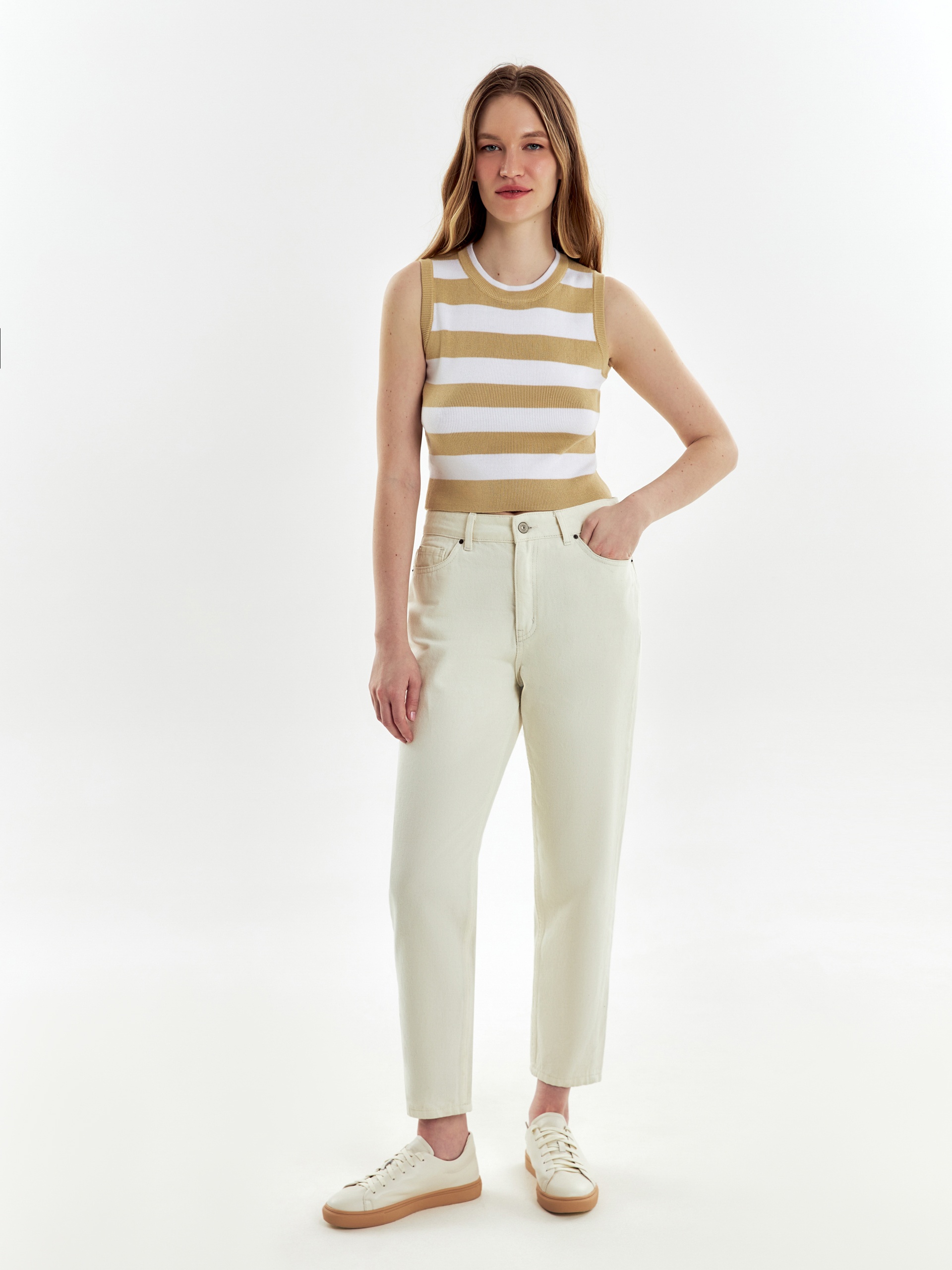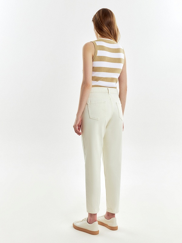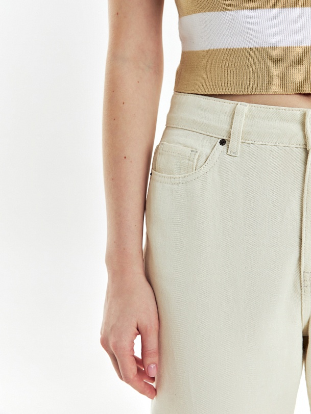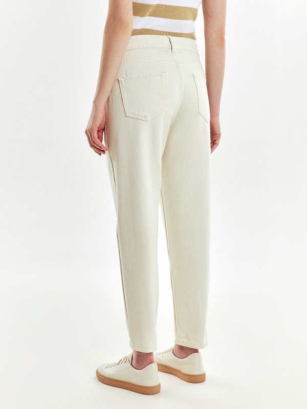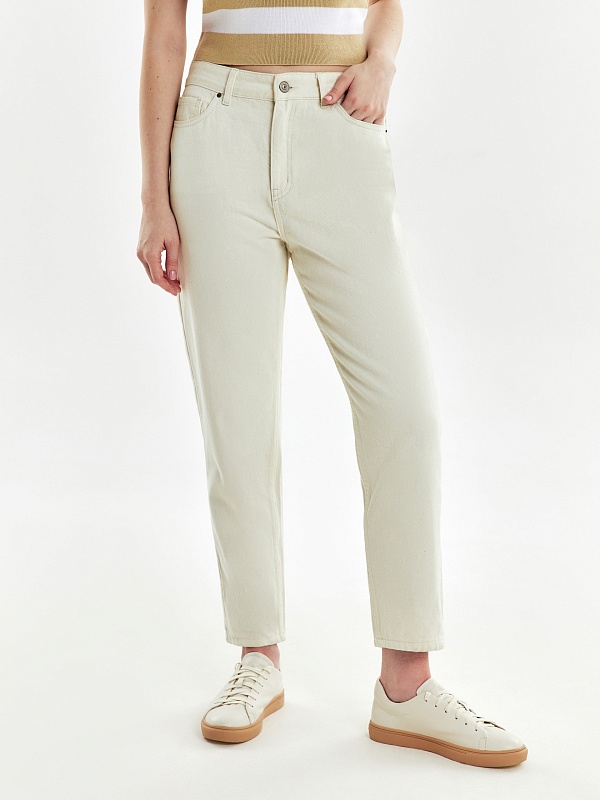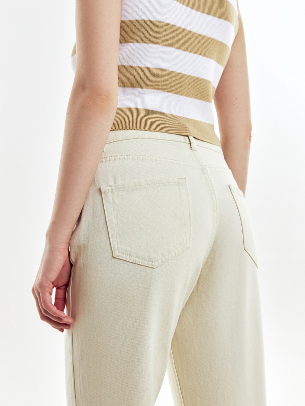Прямые джинсы из 100% хлопка, с фигурными рабочими карманами. Застежка спереди на молнию и металлическую пуговицу. Сзади фигурная кокетка и накладные карманы. Идеальная модель для создания комфортных повседневных образов.