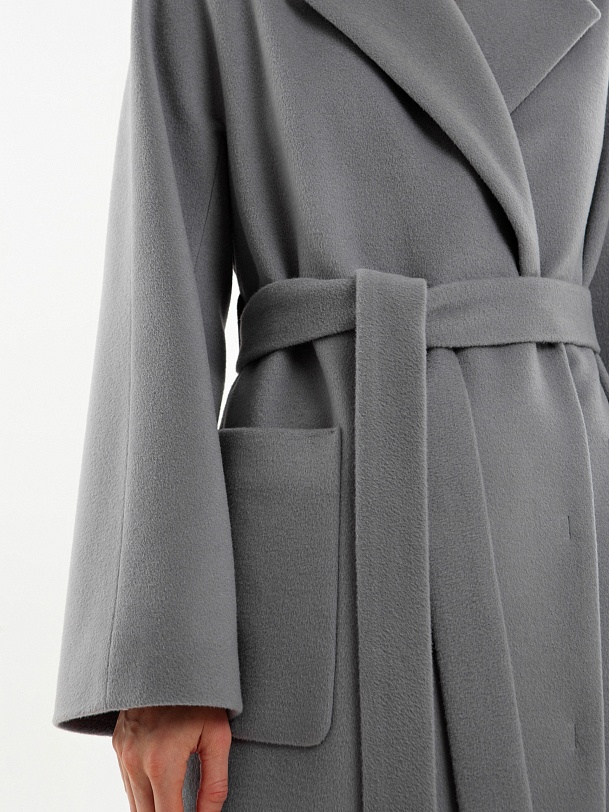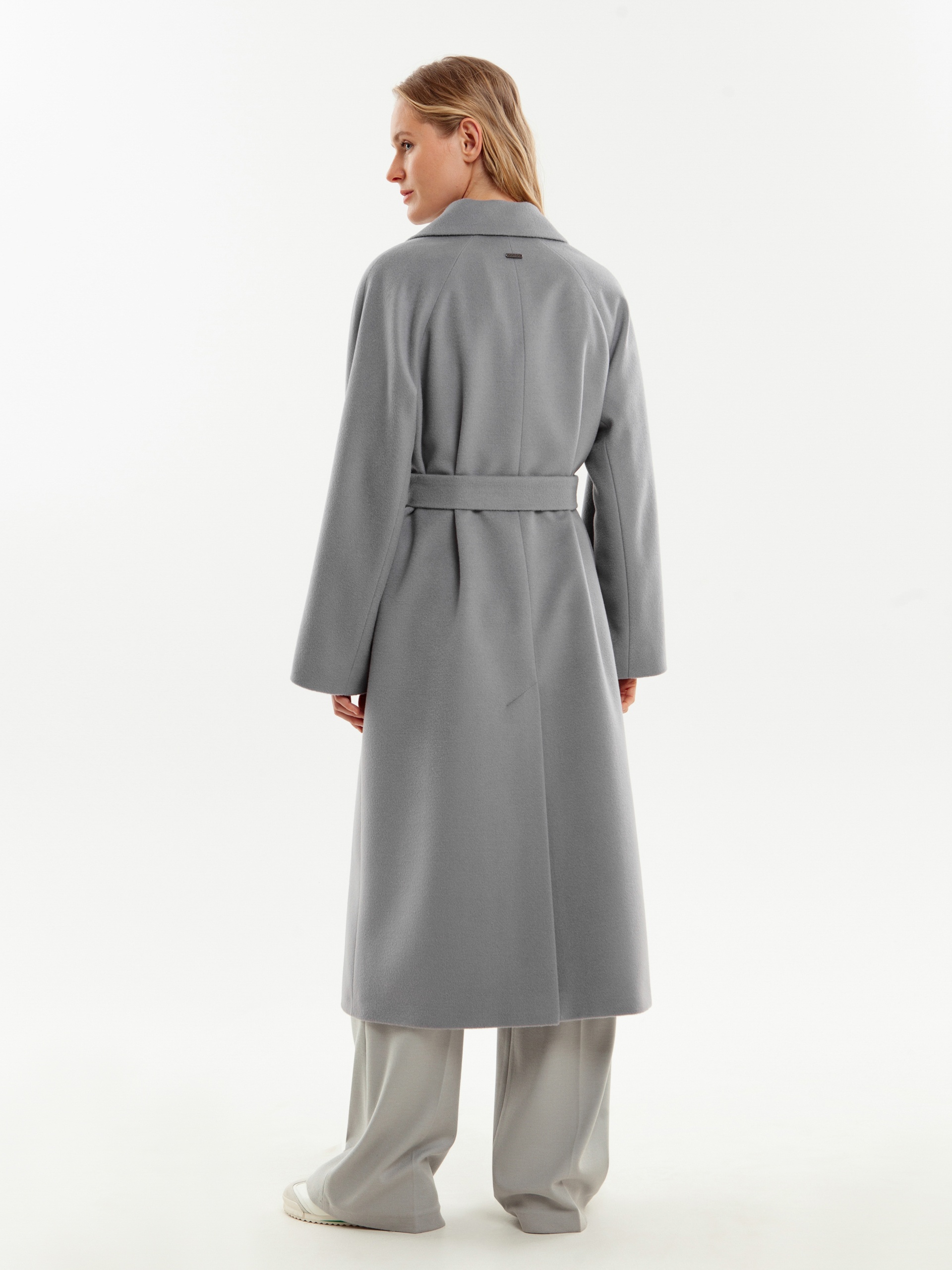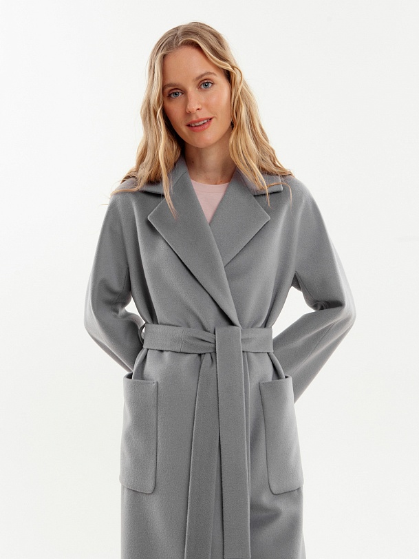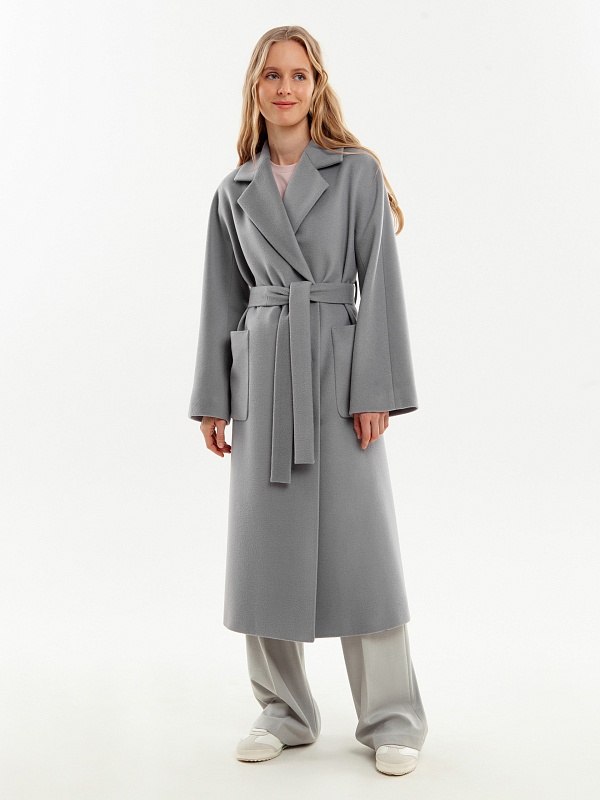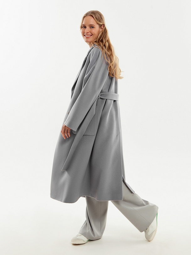 Двубортное пальто из шерстяной ворсовой ткани в светло-сером оттенке. Это расклешенное пальто силуэта "трапеция" дарит ощущение домашнего уюта и заботы. Большой объем и комбинированный рукав (цельнокроеный спереди и реглан на спинке) позволяют буквально завернуться в него. Спереди находятся крупные накладные карманы. Застегивается пальто на ряд надежных пришивных кнопок. В комплект к изделию предлагается пояс из основной ткани. Пальто на подкладке. Произведено в Санкт-Петербурге.