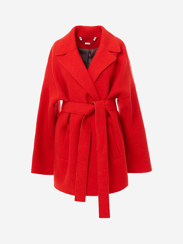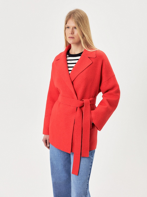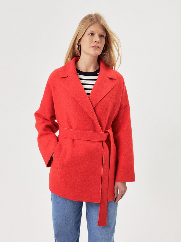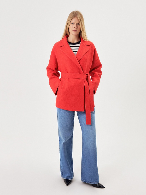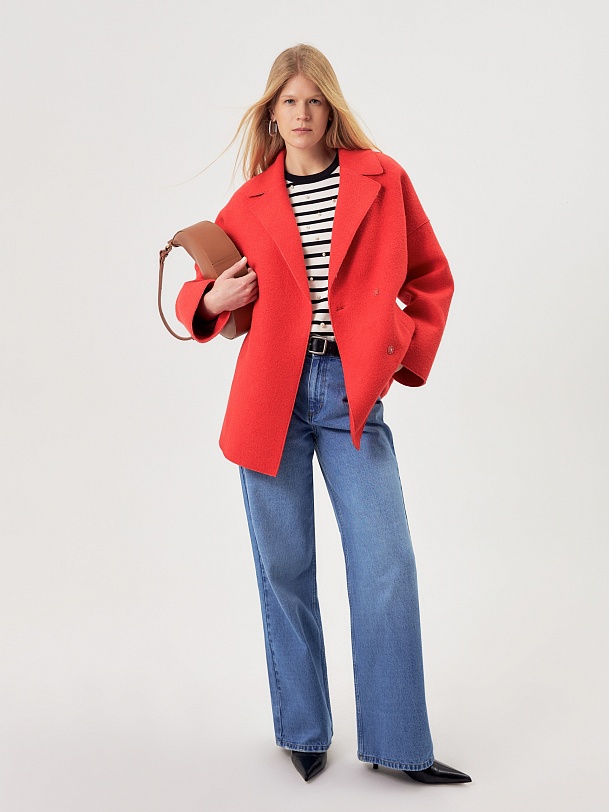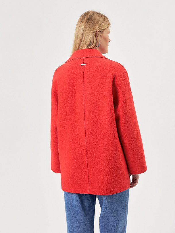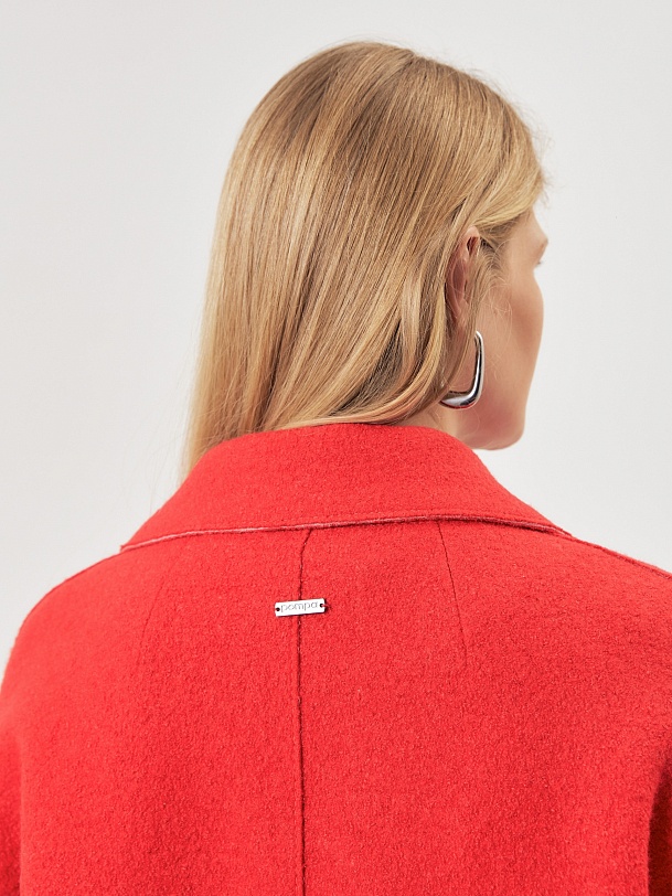 Двубортное полупальто силуэта "кокон" из яркой коралловой ткани с эффектом "вареная шерсть". Широкий английский воротник, застежка на два ряда надежных кнопок, рубашечный рукав с широкой подгибкой низа и глубокие карманы с листочками делают полупальто невероятно комфортным в носке, а цвет и форма - очень стильным и ярким. Длина пальто выше колена, изделие на подкладке. Произведено в Санкт-Петербурге.