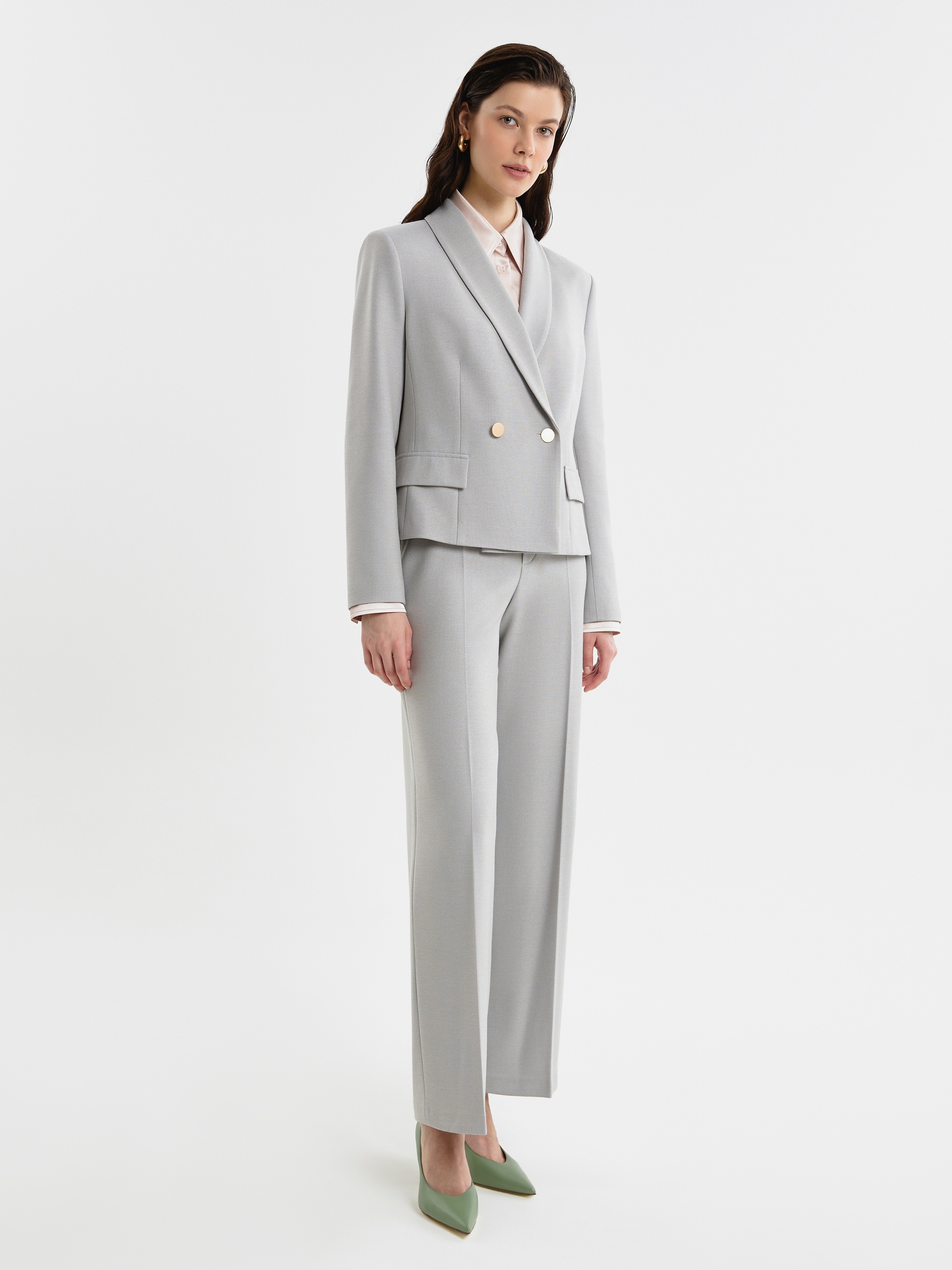 Укороченный двубортный жакет из фактурной костюмной ткани