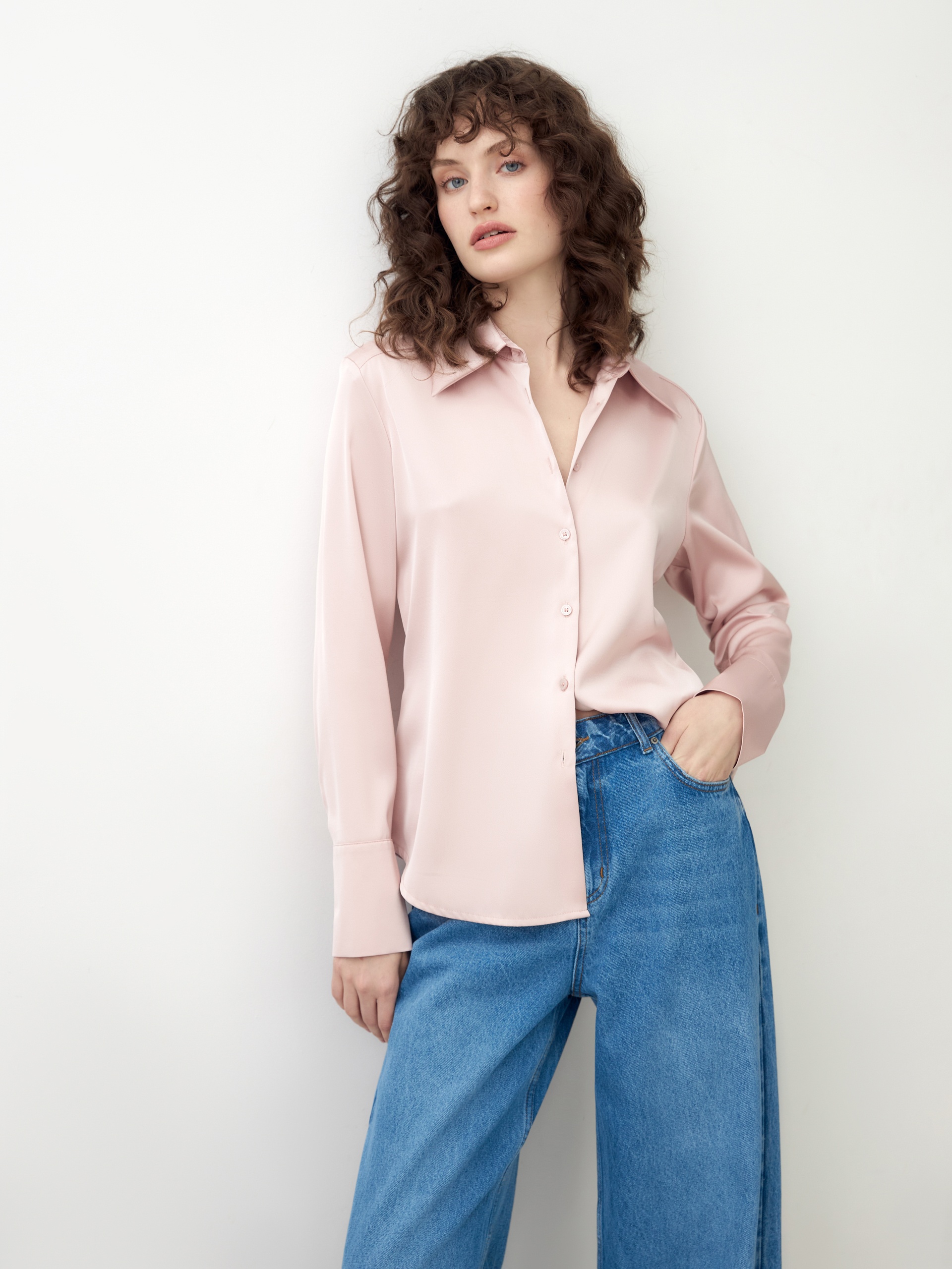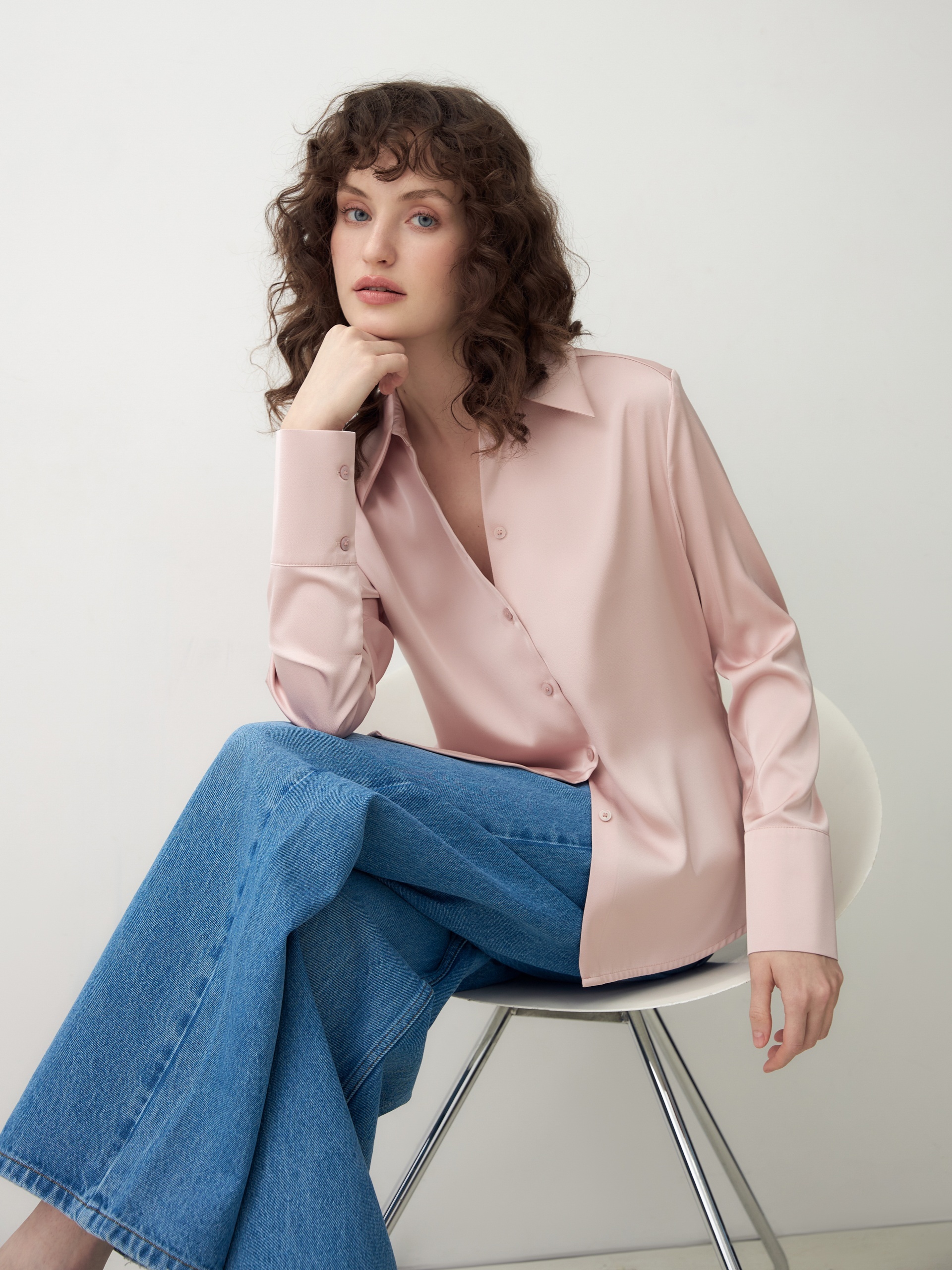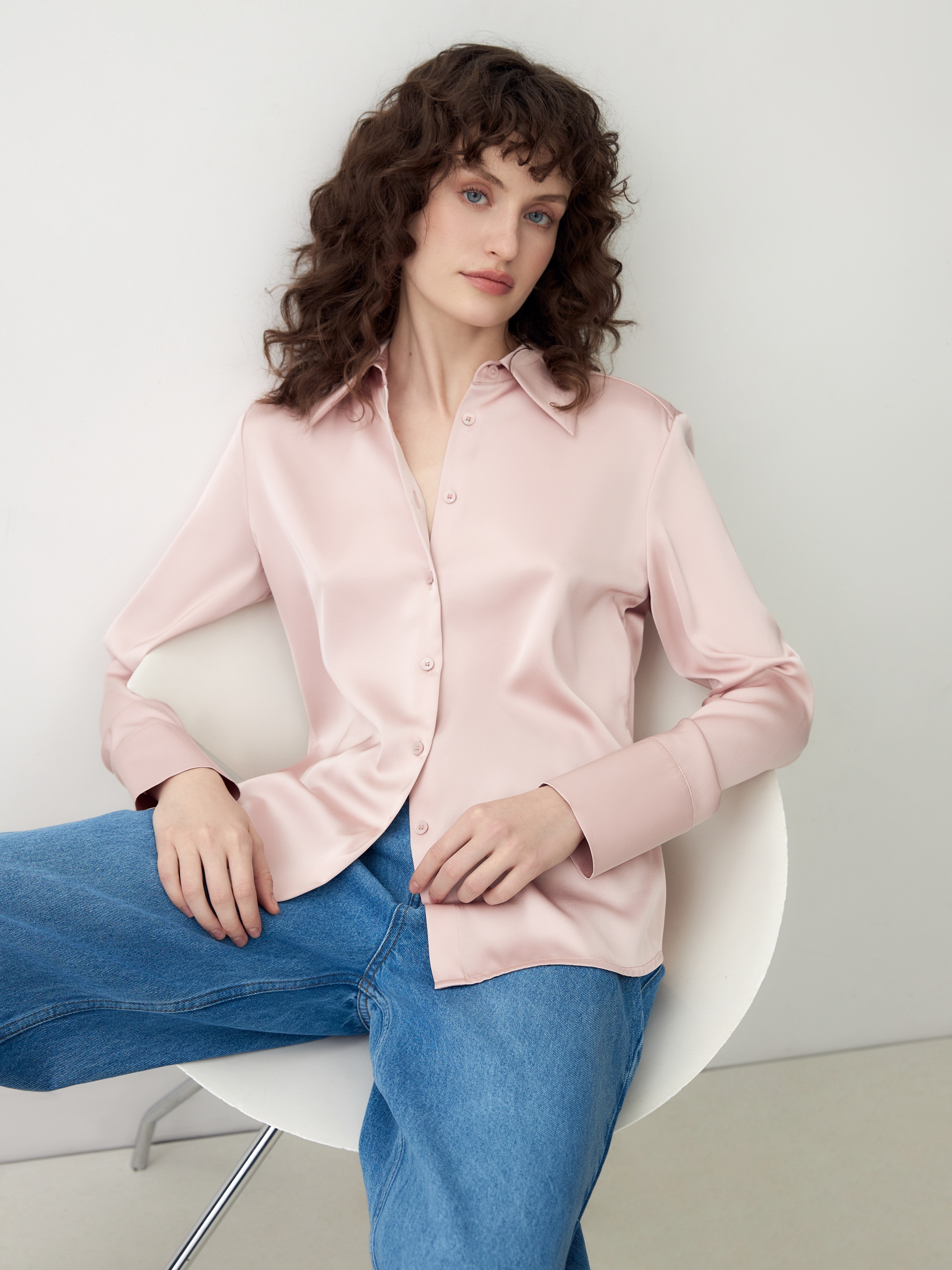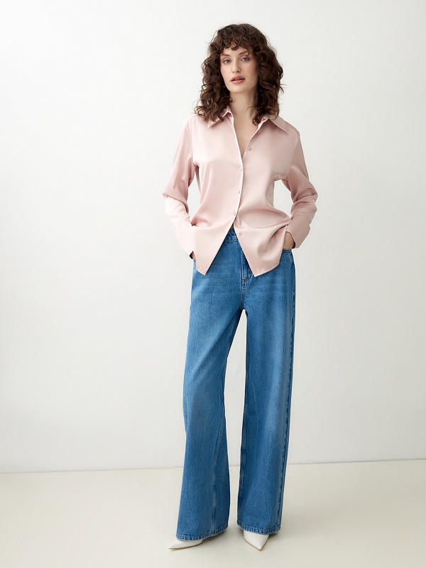 Блузка на пуговицах из вискозной атласной ткани