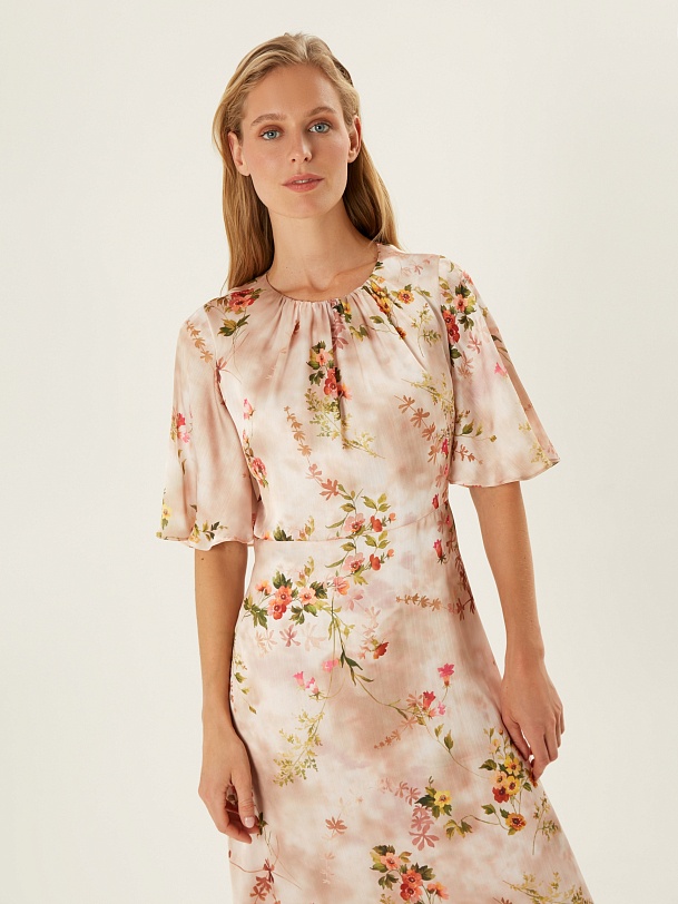 Приталенное платье из шифона с цветочным принтом