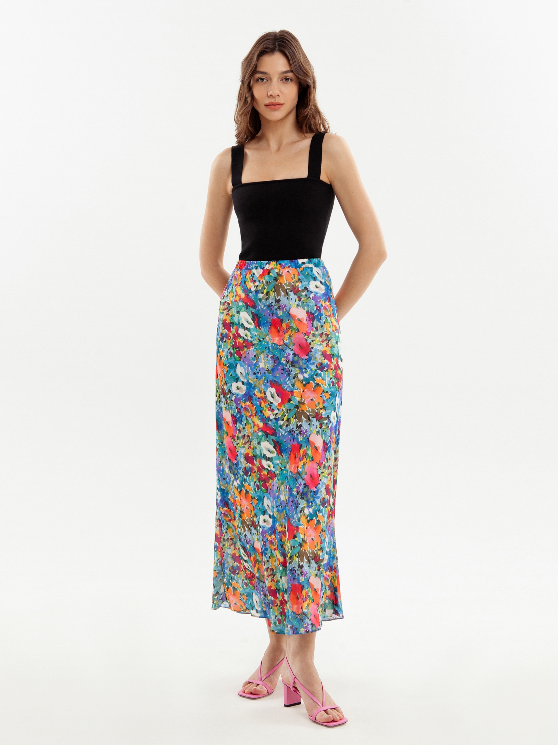 Летняя юбка макси в цветочном принте
