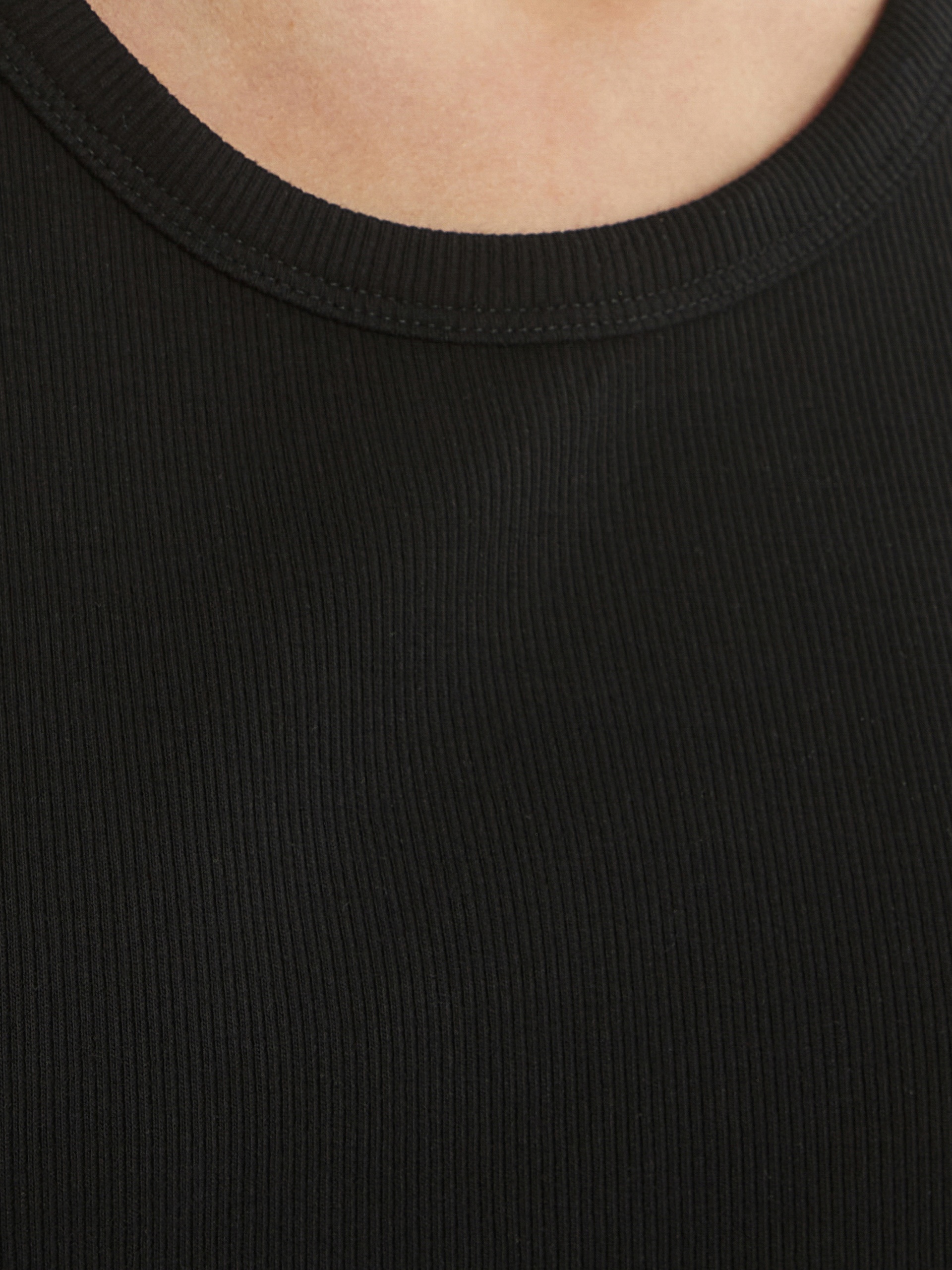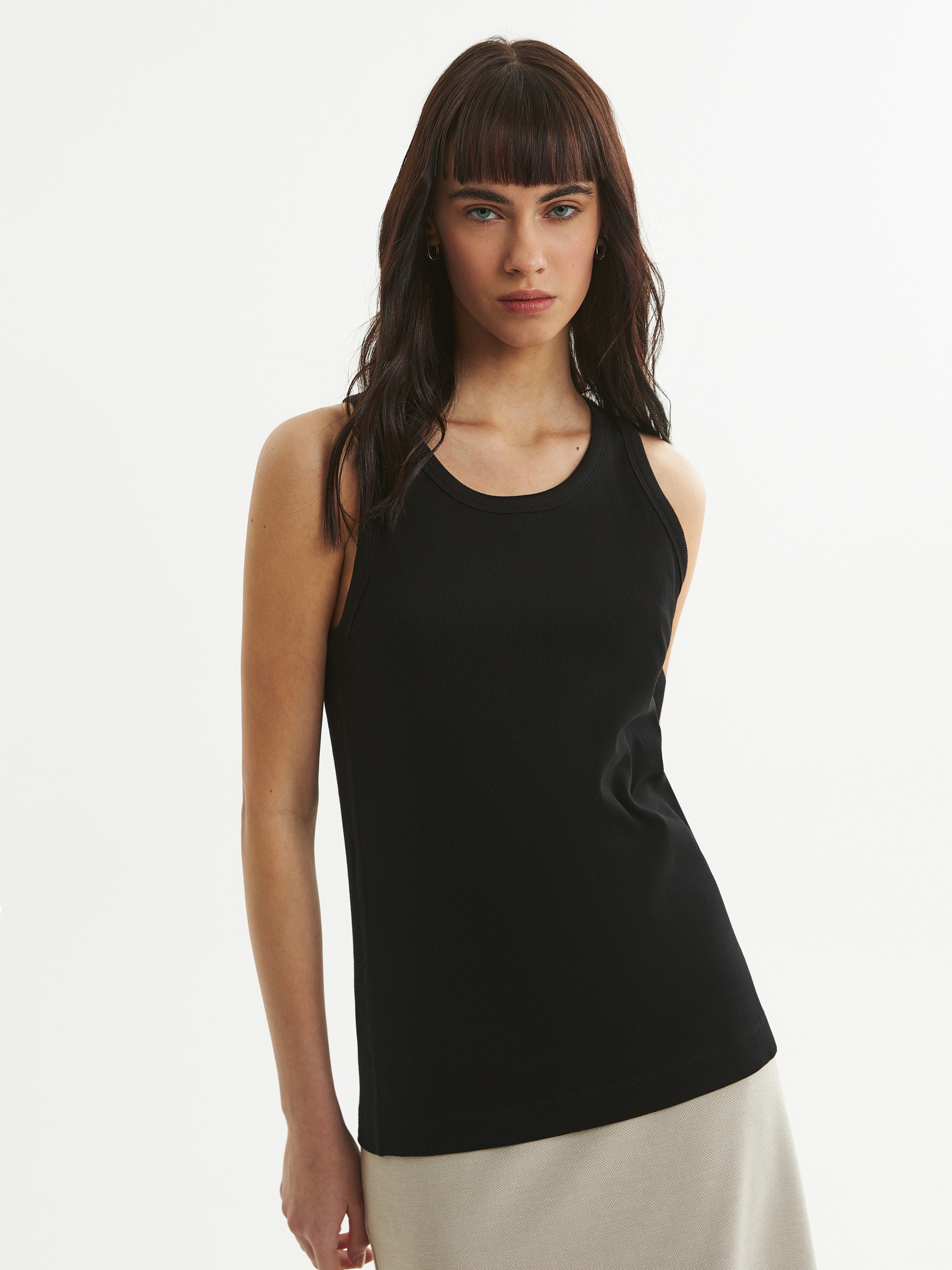 Топ из трикотажного рибового полотна - актуальное прочтение классической формы, которое выгодно сочетается с вещами как в кэжуал образах, так и в офисном стиле.