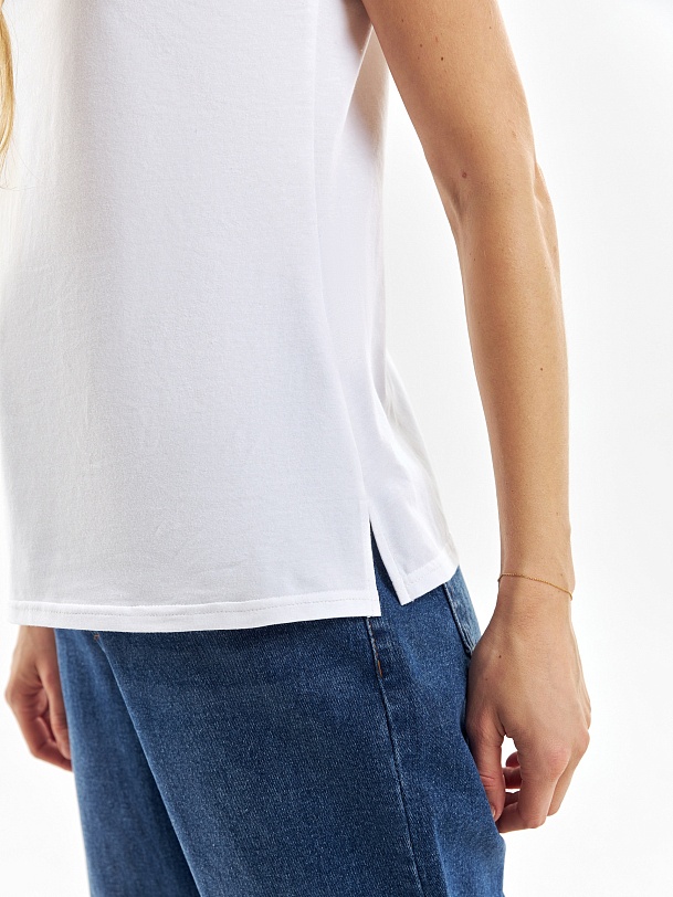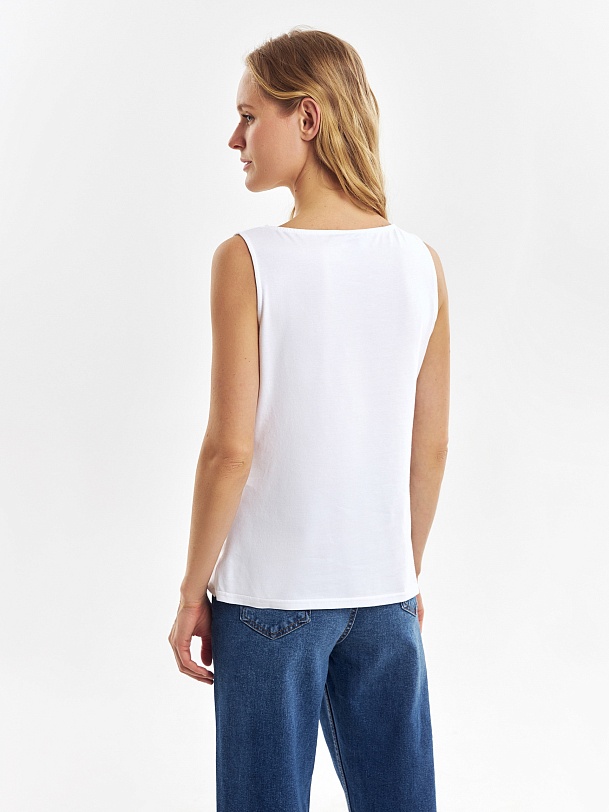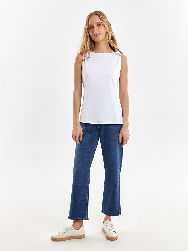 Топ из смесового трикотажа с шелком облегающего силуэта. Женственный вырез лодочкой и матовый блеск полотна придадут вашему облику элегантности.