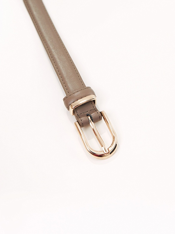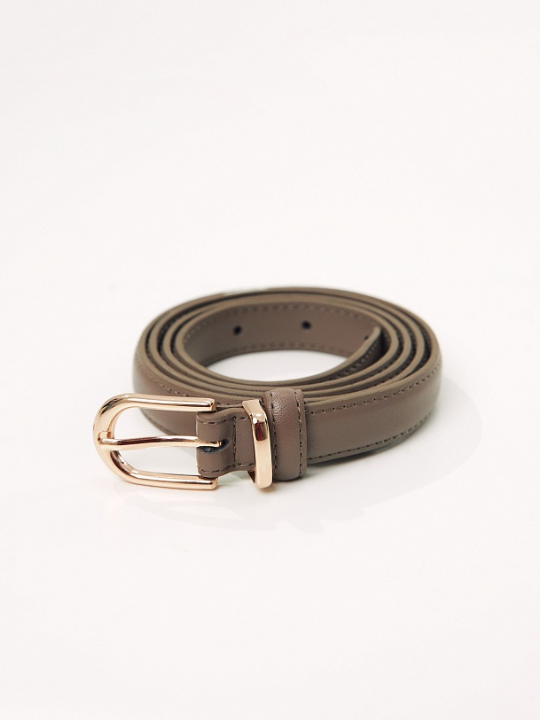 Универсальный ремень из гладкой натуральной кожи в цвете капучино. Края ремня прострочены, что делает его более долговечным. Ремень застегивается на минималистичную металлическую пряжку с золотым отблеском и металлическую шлевку. Ремень представлен в трех размерах: S длиной 100 см, M длиной 110 см и L длиной 120 см. Ширина 2 см.
