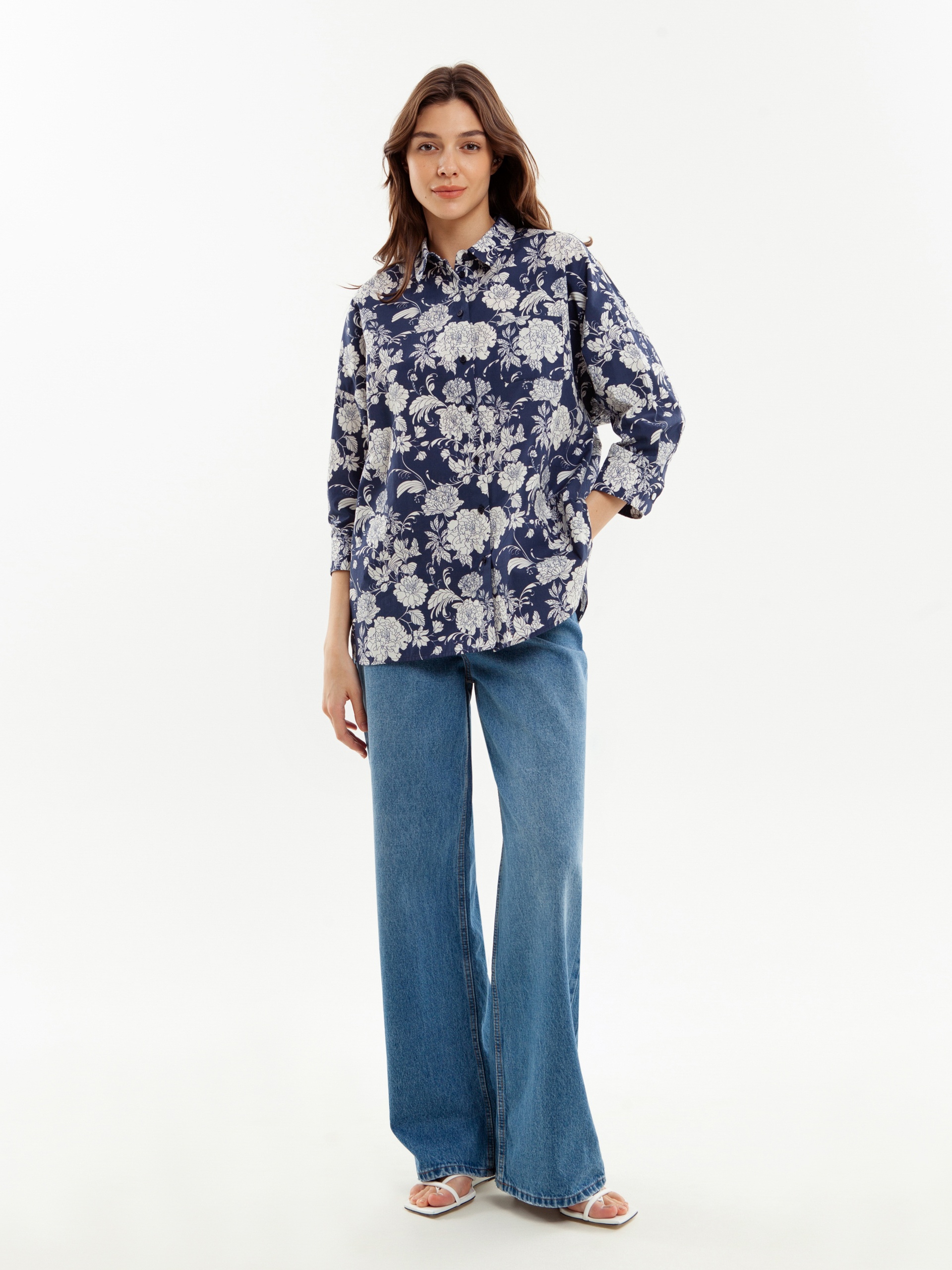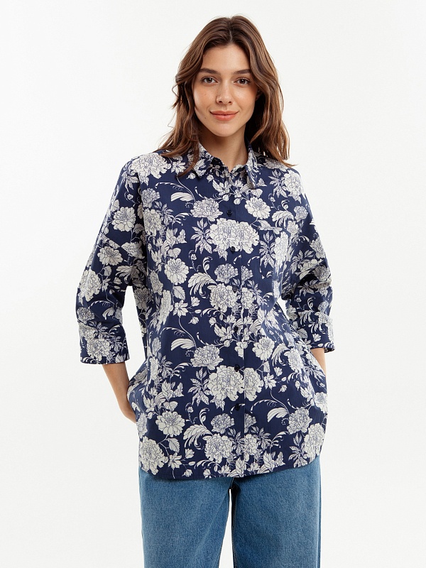 Хлопковая рубашка с цветочным принтом