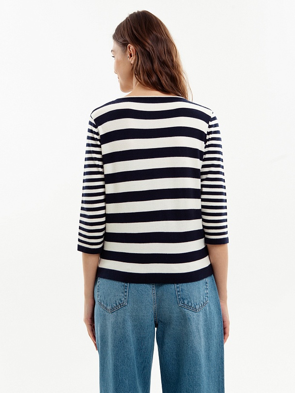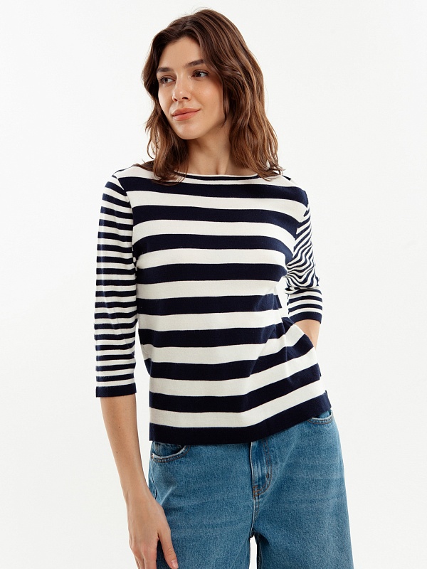 Джемпер прямого кроя в бретонскую полоску придаст вашему весеннему образу настроение морского вояжа, даже если за окном холода.