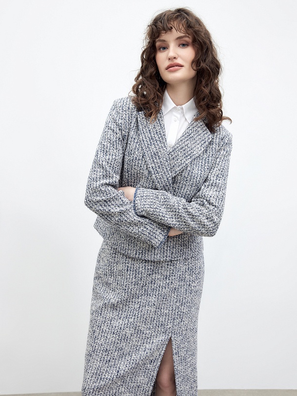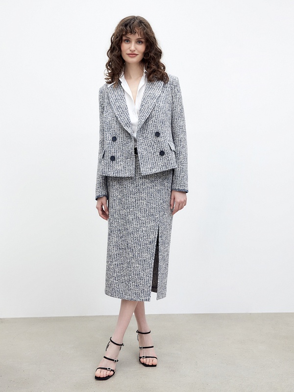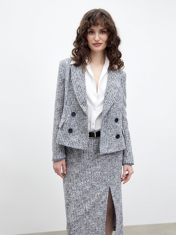 Двубортный твидовый жакет