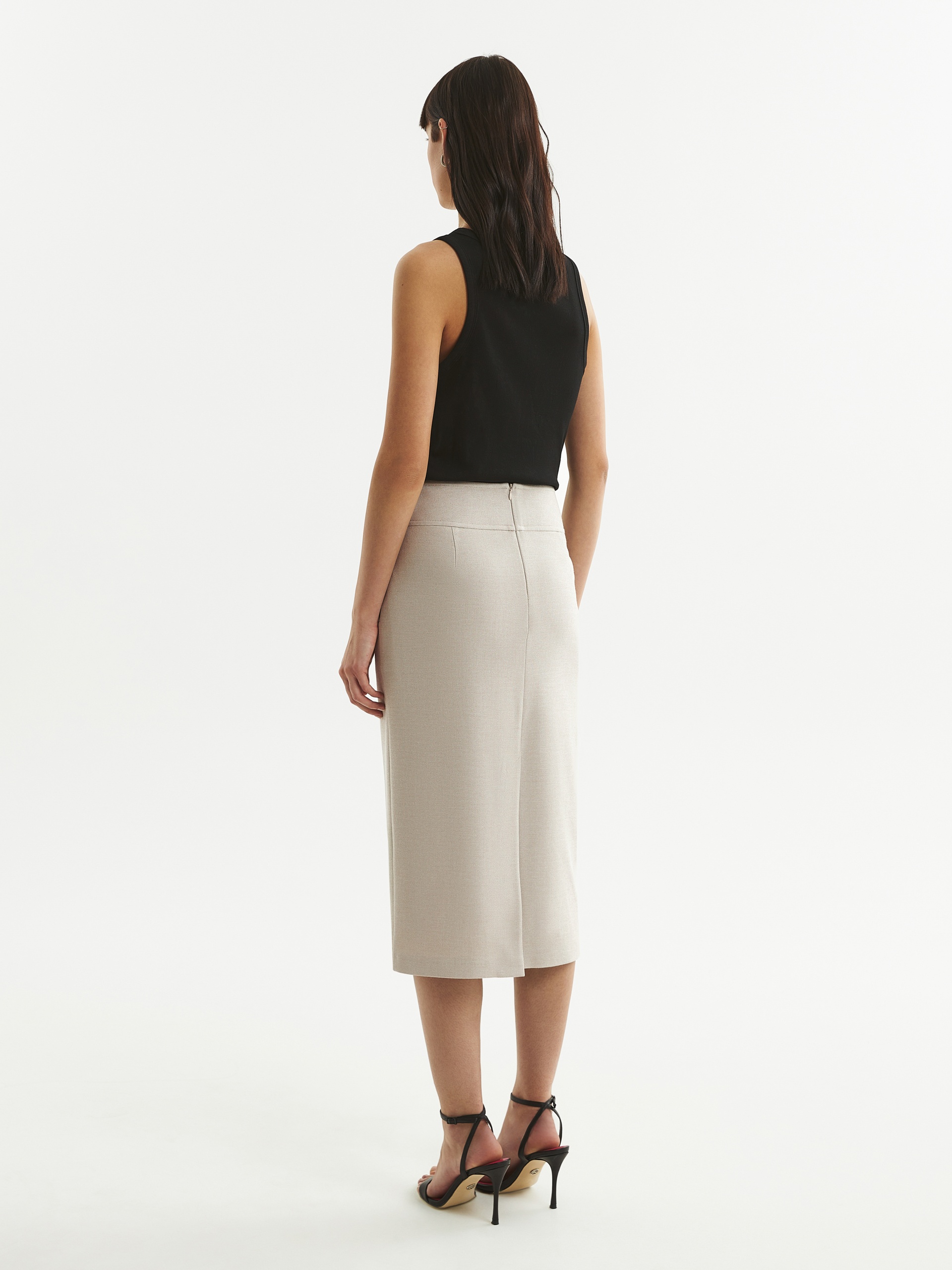 Юбка-карандаш из фактурной костюмной ткани с разрезом