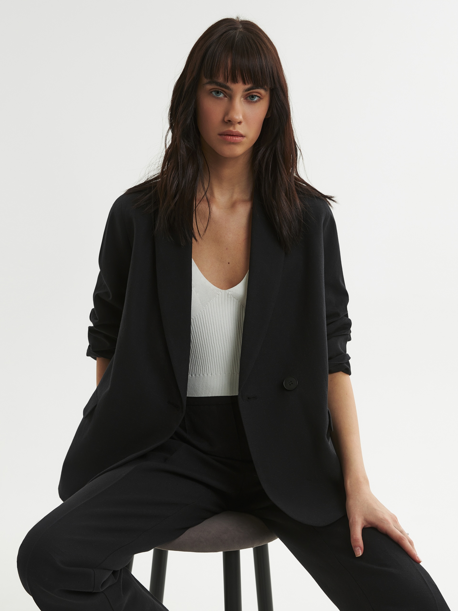 Этот жакет моя палочка-выручалочка летом! Очень нравится, как сидит: чуть свободный, но не мешковатый. Ткань прелесть, телу приятно, ношу с льняными брюками и мюлями чувствую себя на итальянских улочках