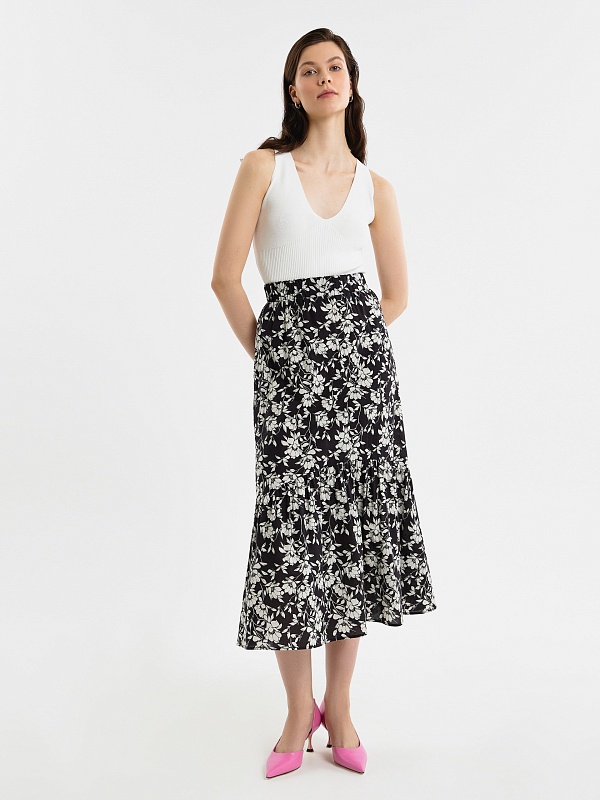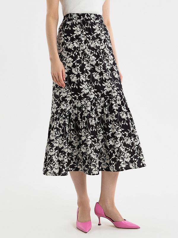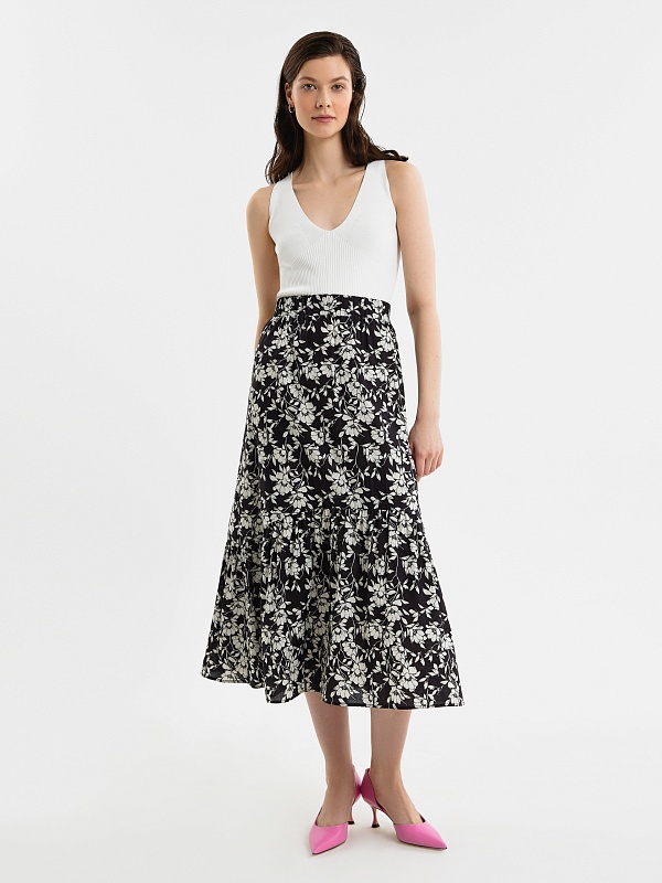Юбка-колокол из хлопка в цветочном принте