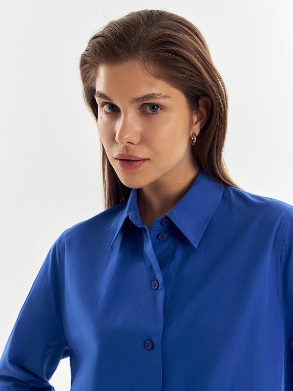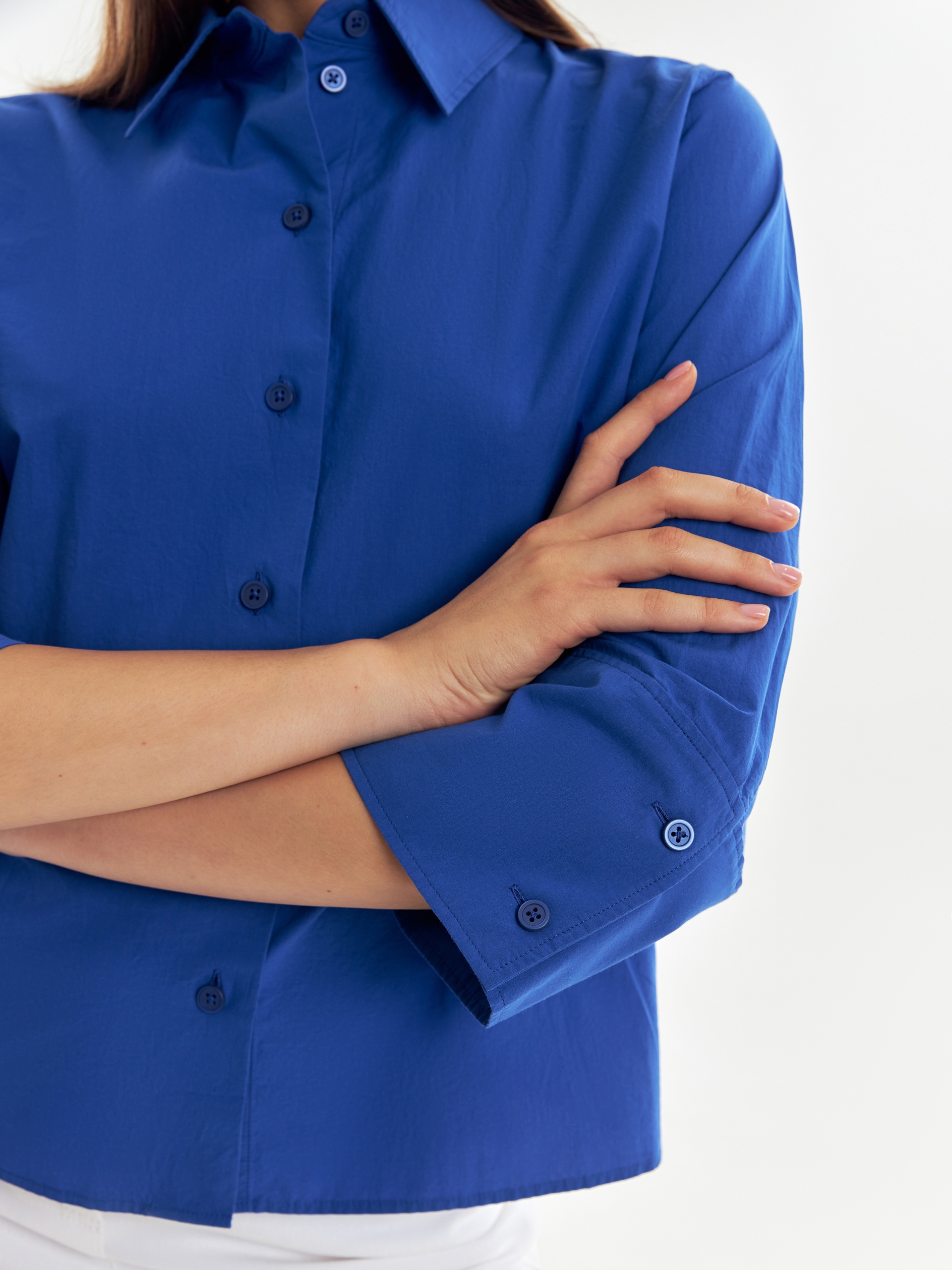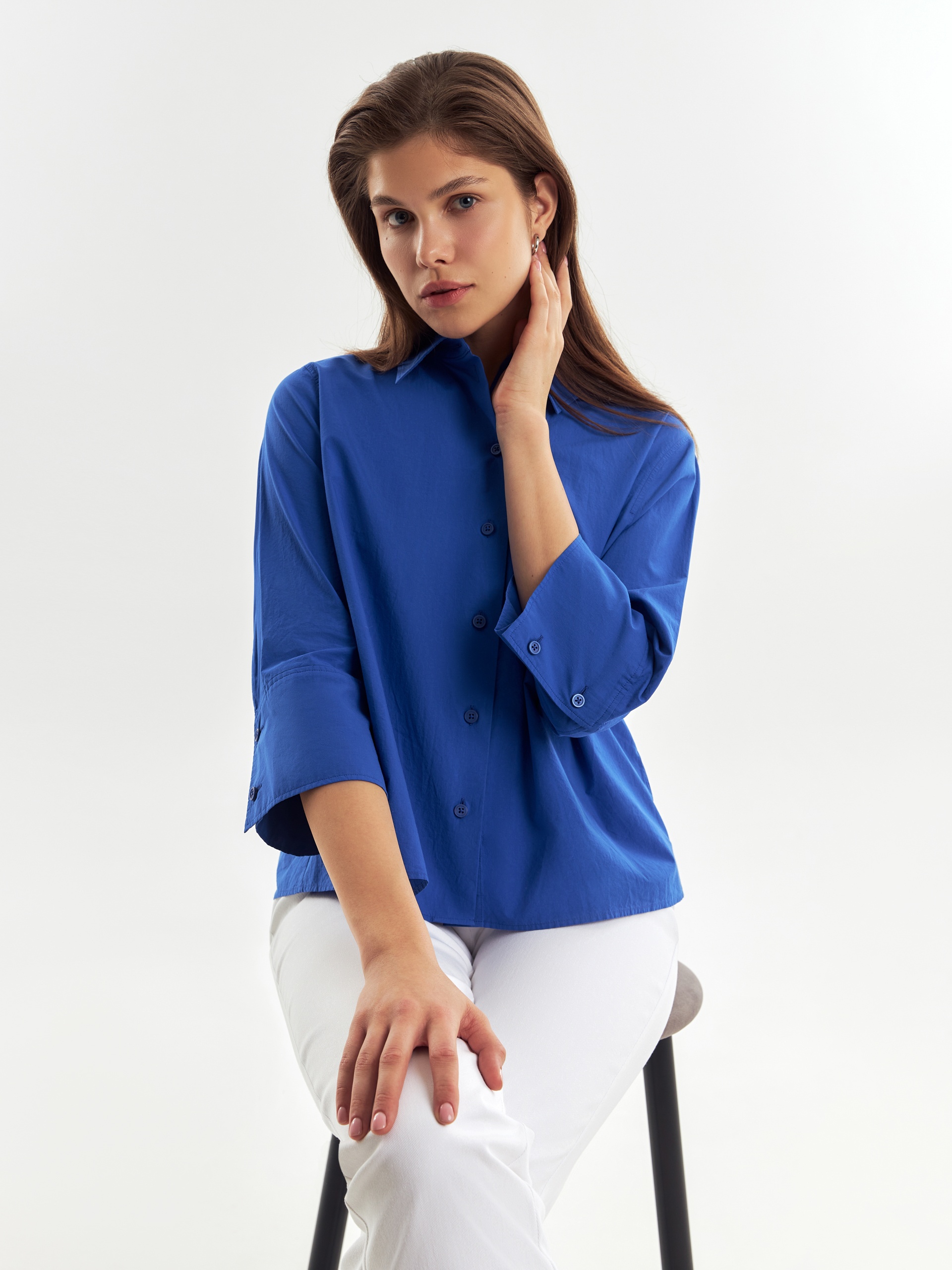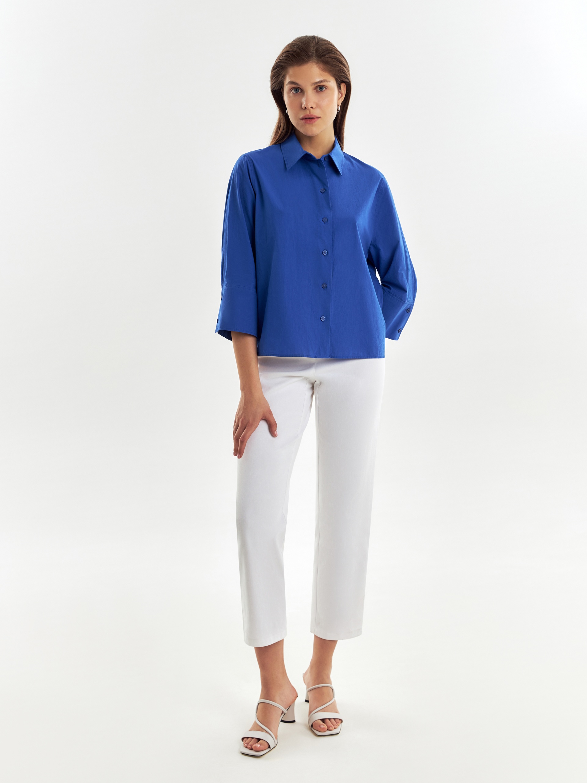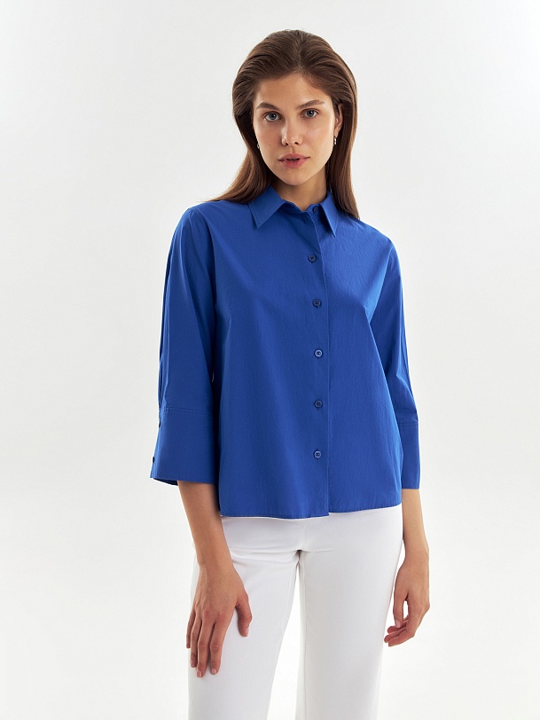 Хлопковая укороченная рубашка с рукавом 3/4