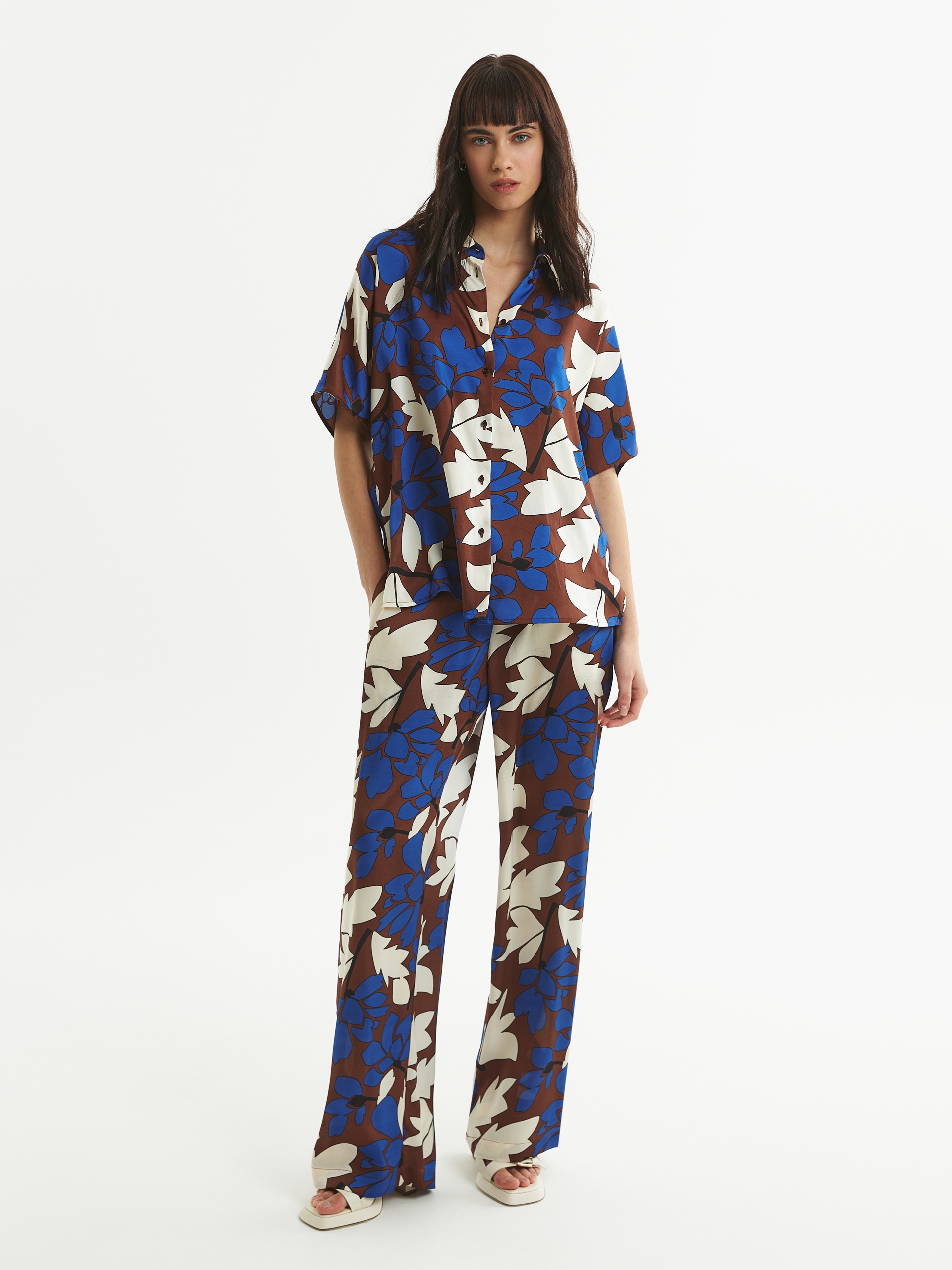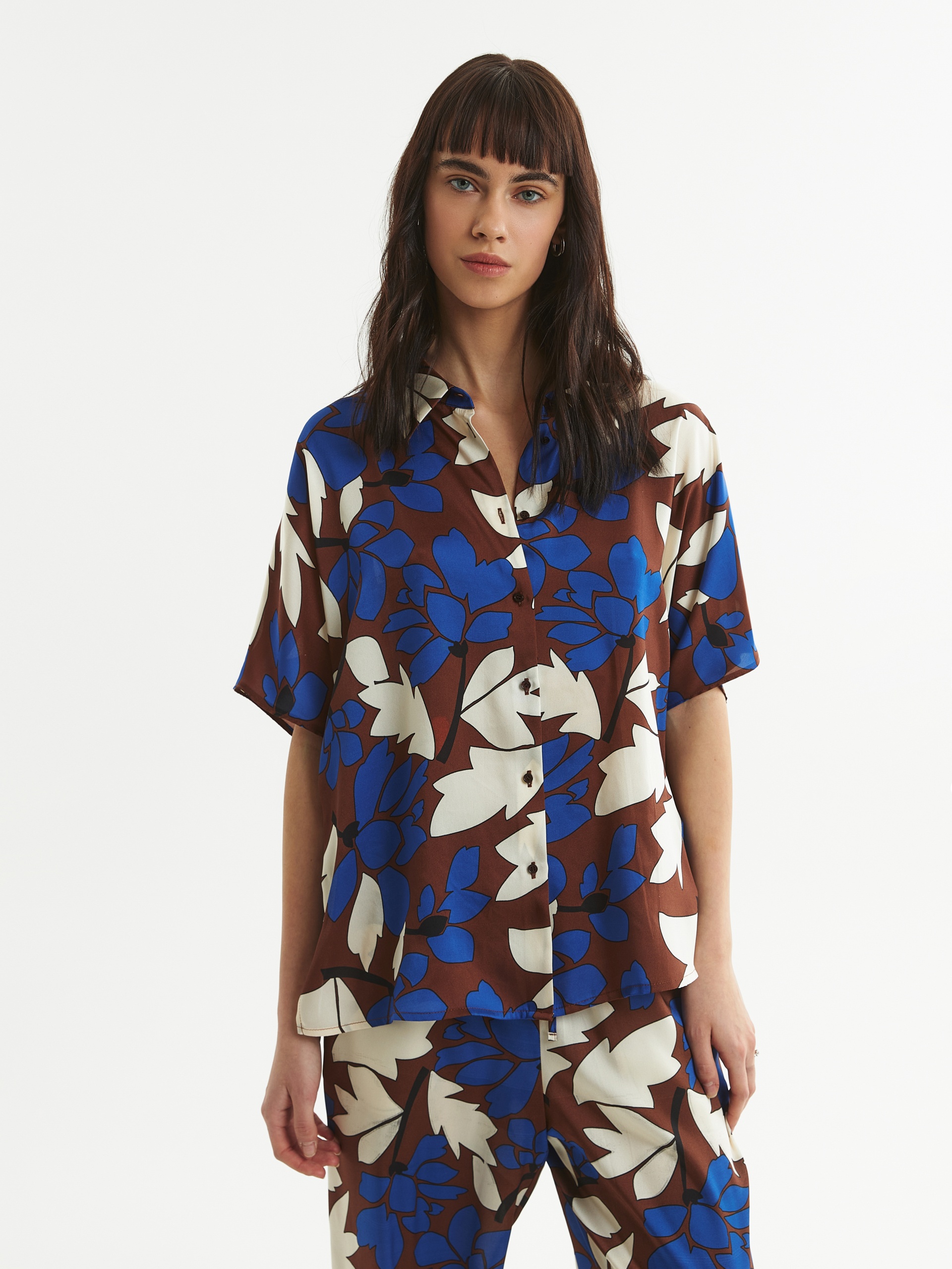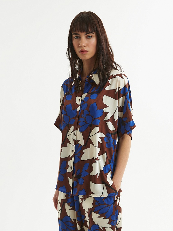 Свободная блуза с крупным цветочным принтом