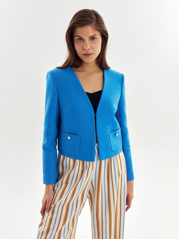 Укороченный твидовый жакет из хлопка