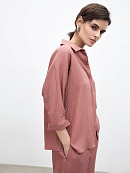 Свободная блуза прямого силуэта с классическим отложным воротником и потайной планкой с цельнокроенным рукавом на прямом манжете. Блуза выполнена из плательной вискозной ткани в цвете пепельный розовый.