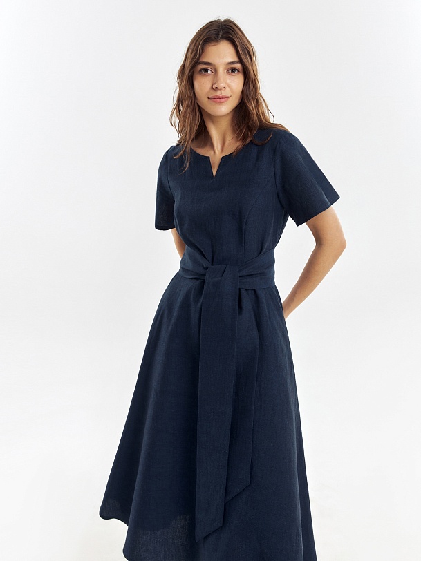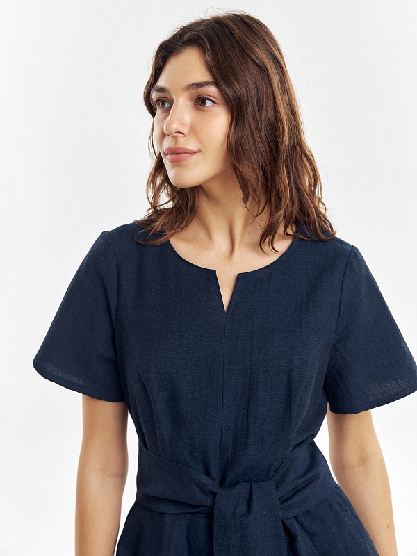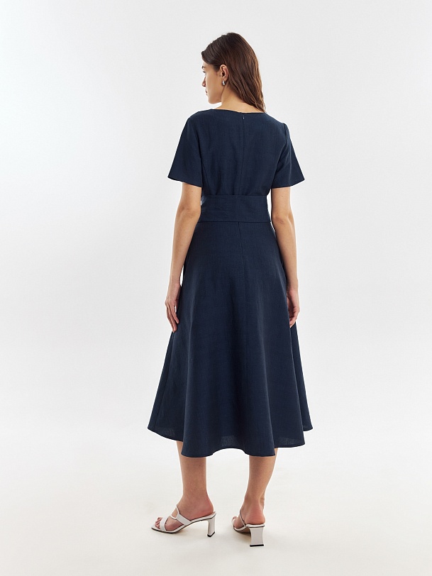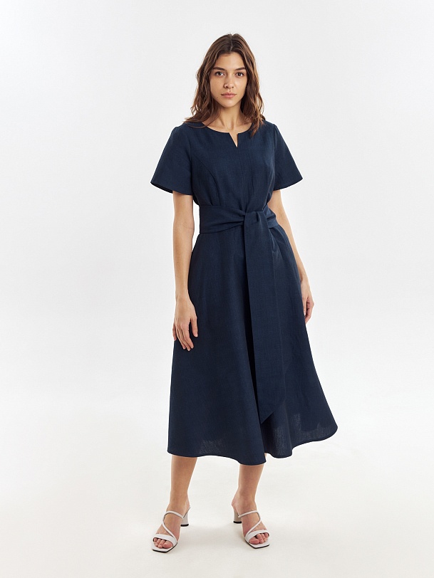 Приталенное платье из хлопка и льна