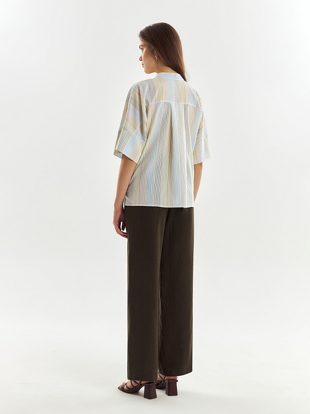 Ооочень приятная блузка, прям как я люблю! Лёгкая, воздушная, но не просвечивает. Ничего не стягивает, удобно двигаться. И полоска тут не банальная, а такая стильная.