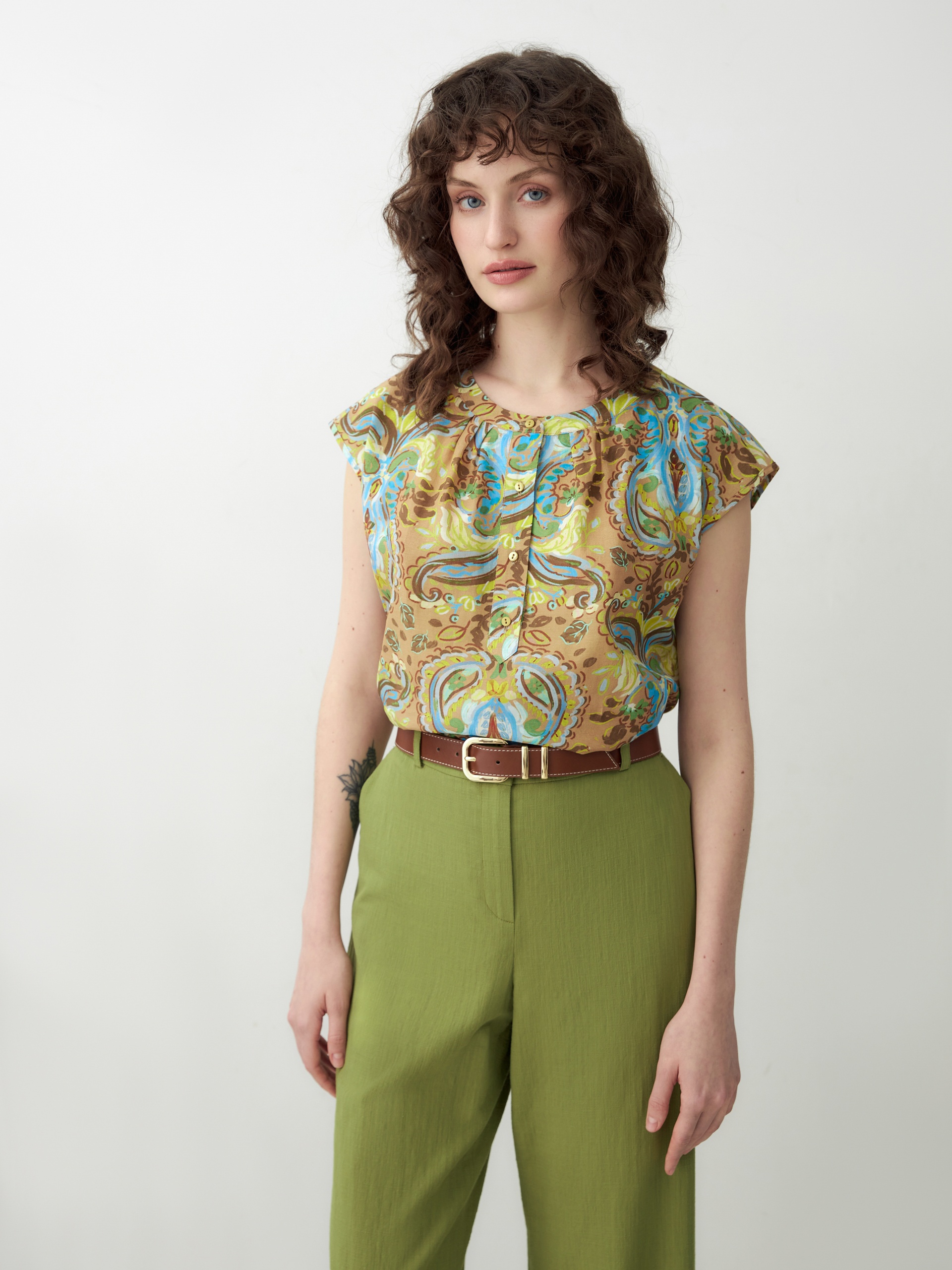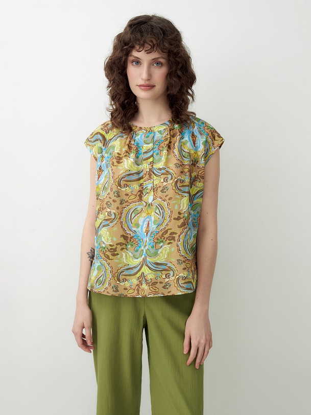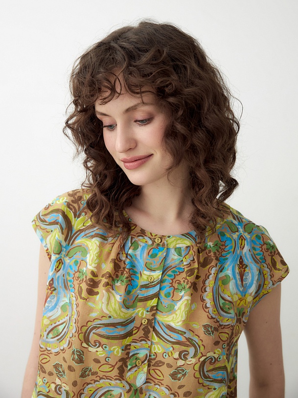 Свободная блуза из натуральной ткани в этническом принте