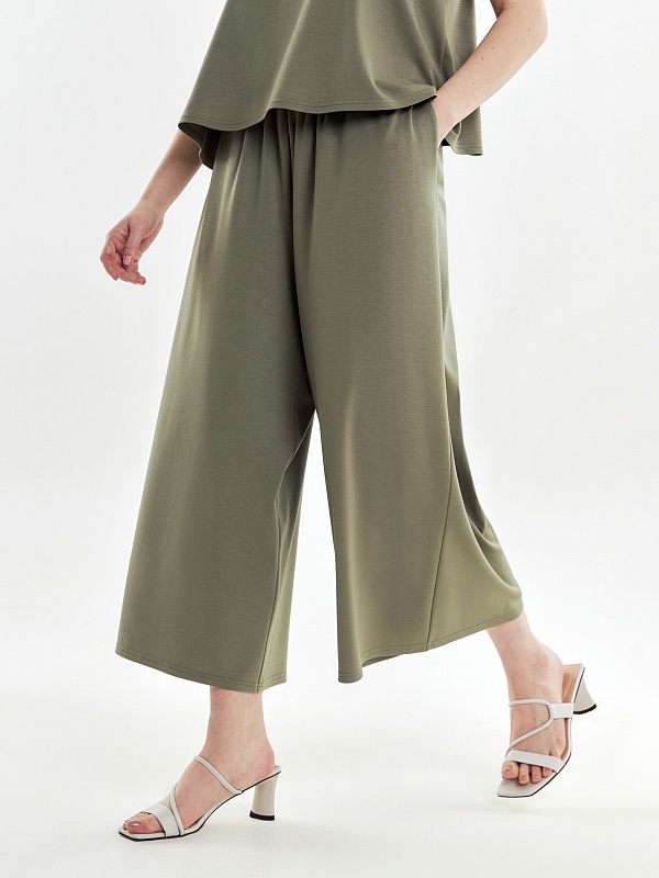Комбинезон из плотного эластичного трикотажа, верх комбинезона расклешен, брюки широкие, в боковых швах карманы. Прекрасный вариант для летних прогулок.