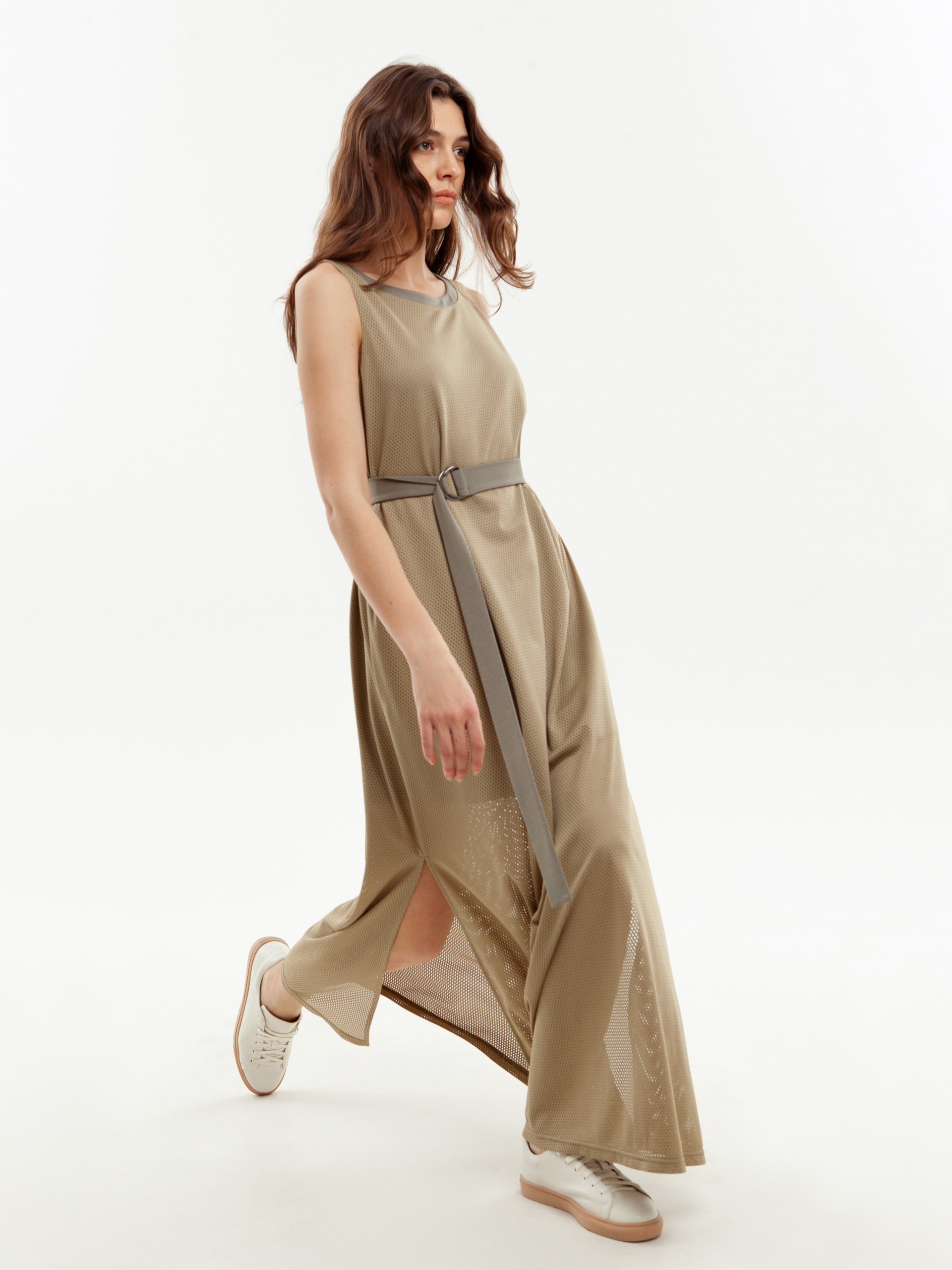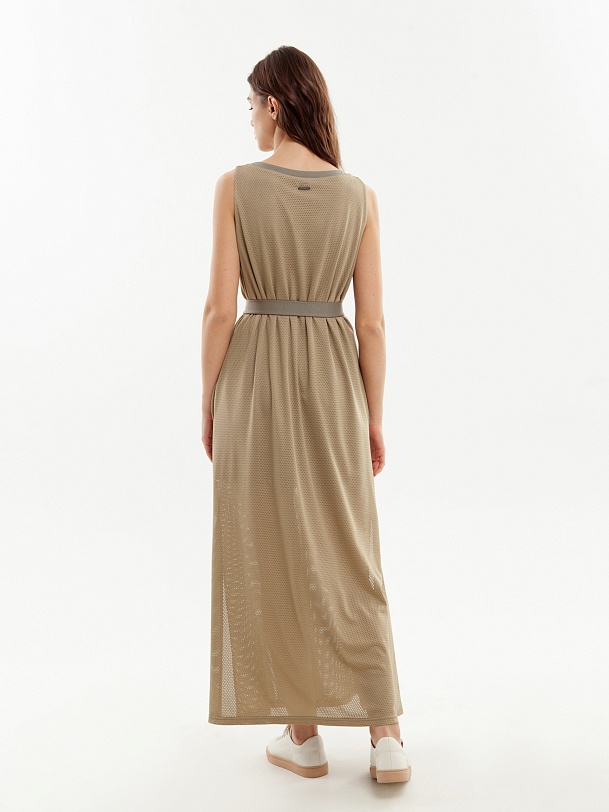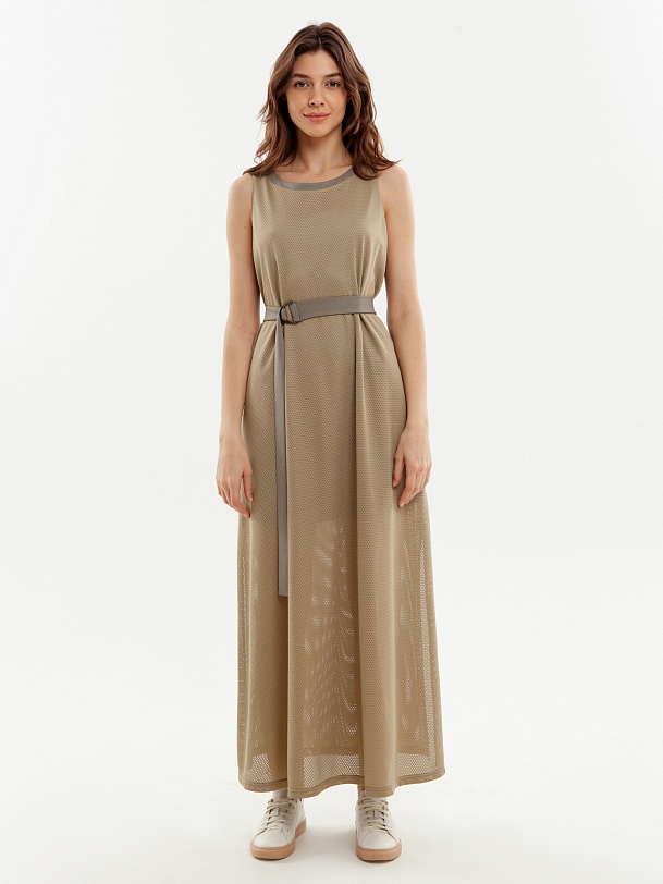 Длинное платье без рукавов с поясом