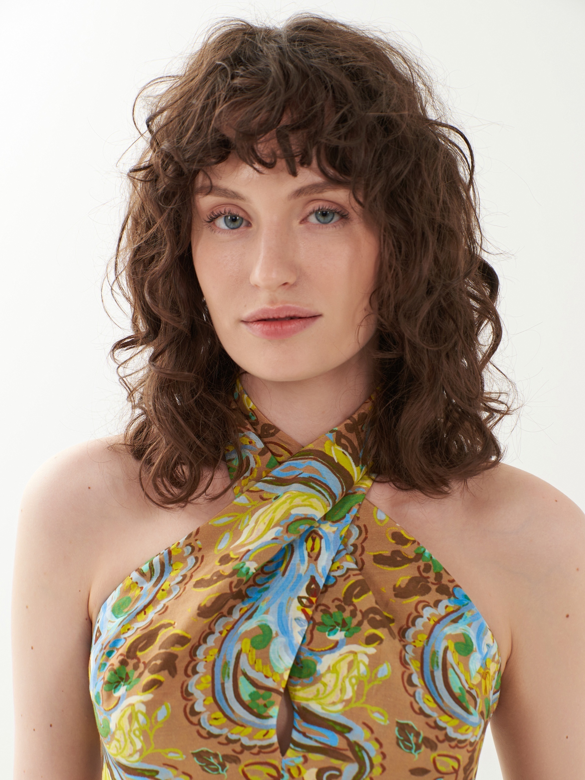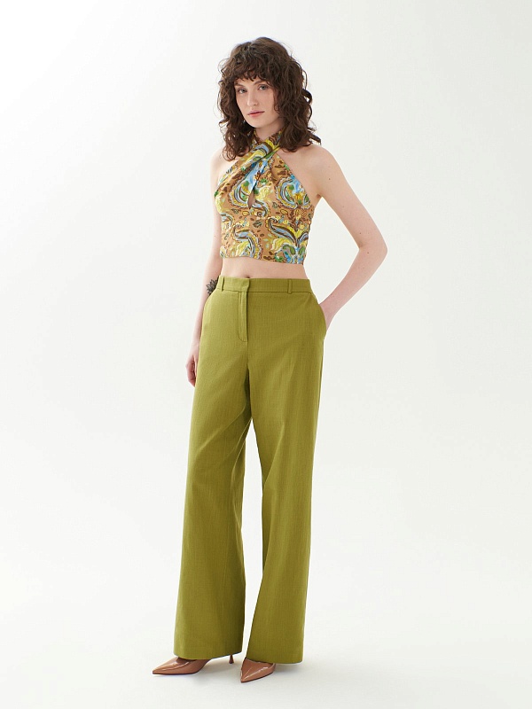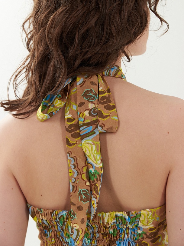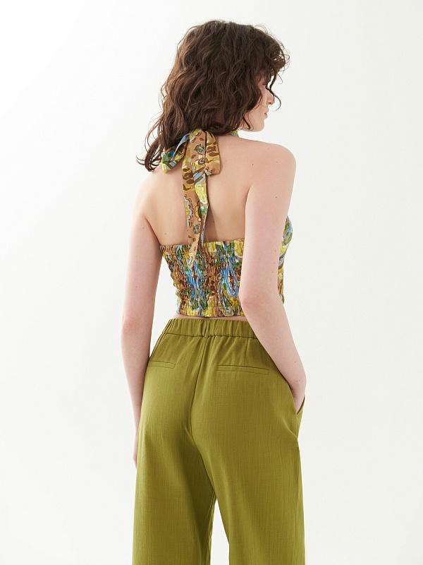 Летний открытый топ из натуральной ткани с завязками на шее