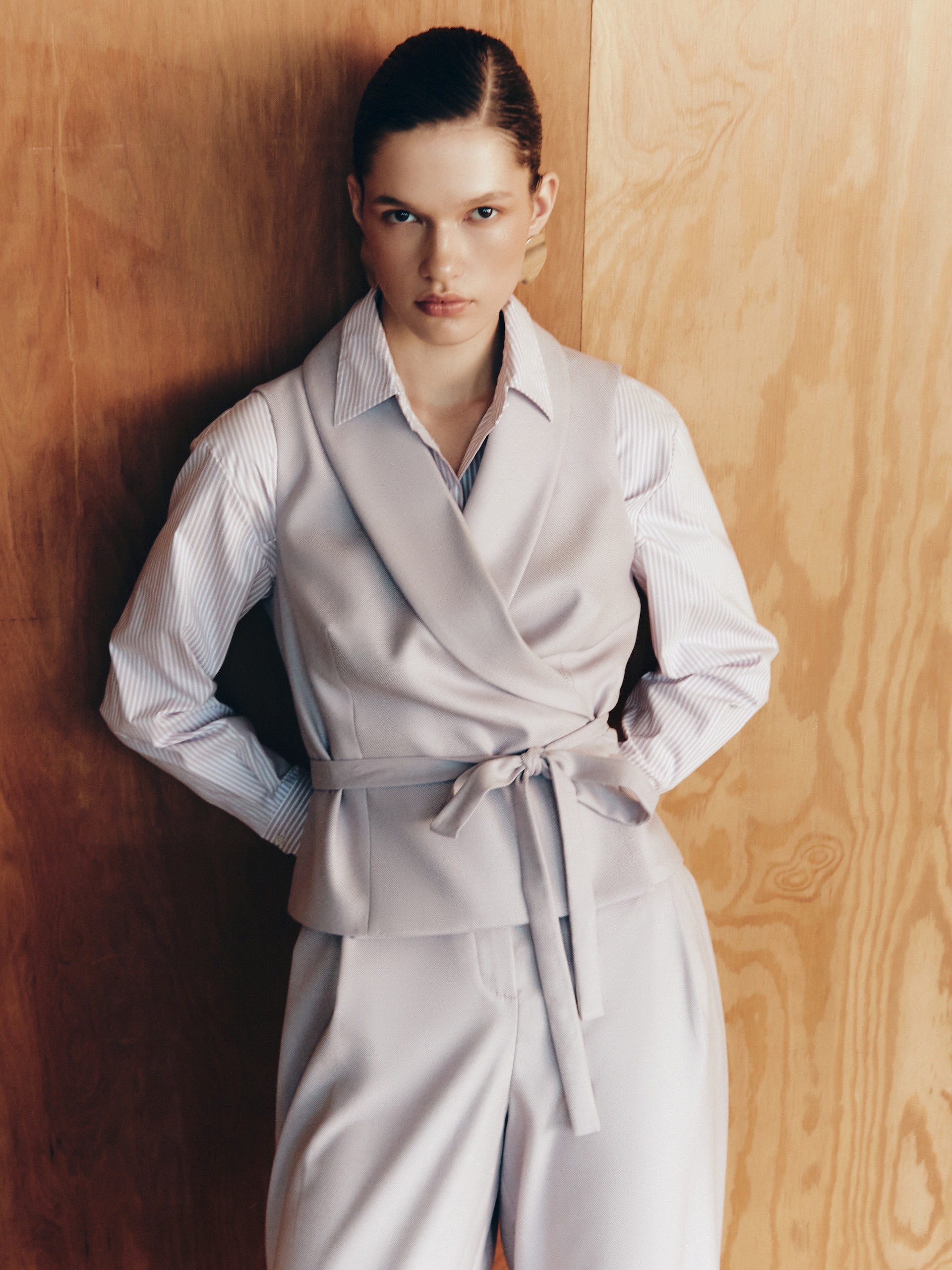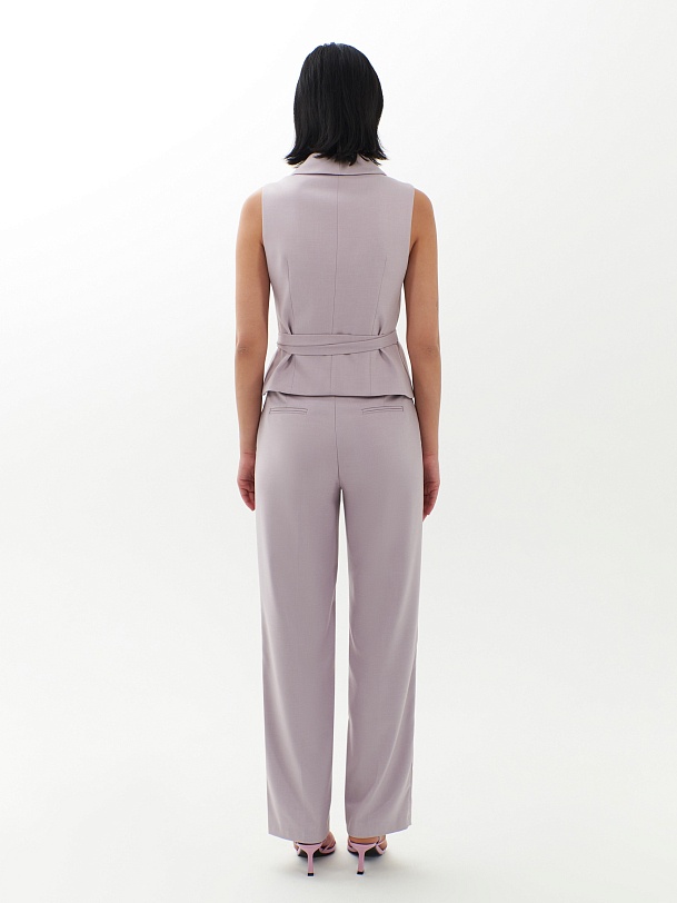 Очень стильный жилет! Идеально подходит для летних вечеров или весны. Материал легкий и приятный на ощупь. Купила вместе с брюками и жакетом из одного комплекта, но можно совмещать и с другими вещами.