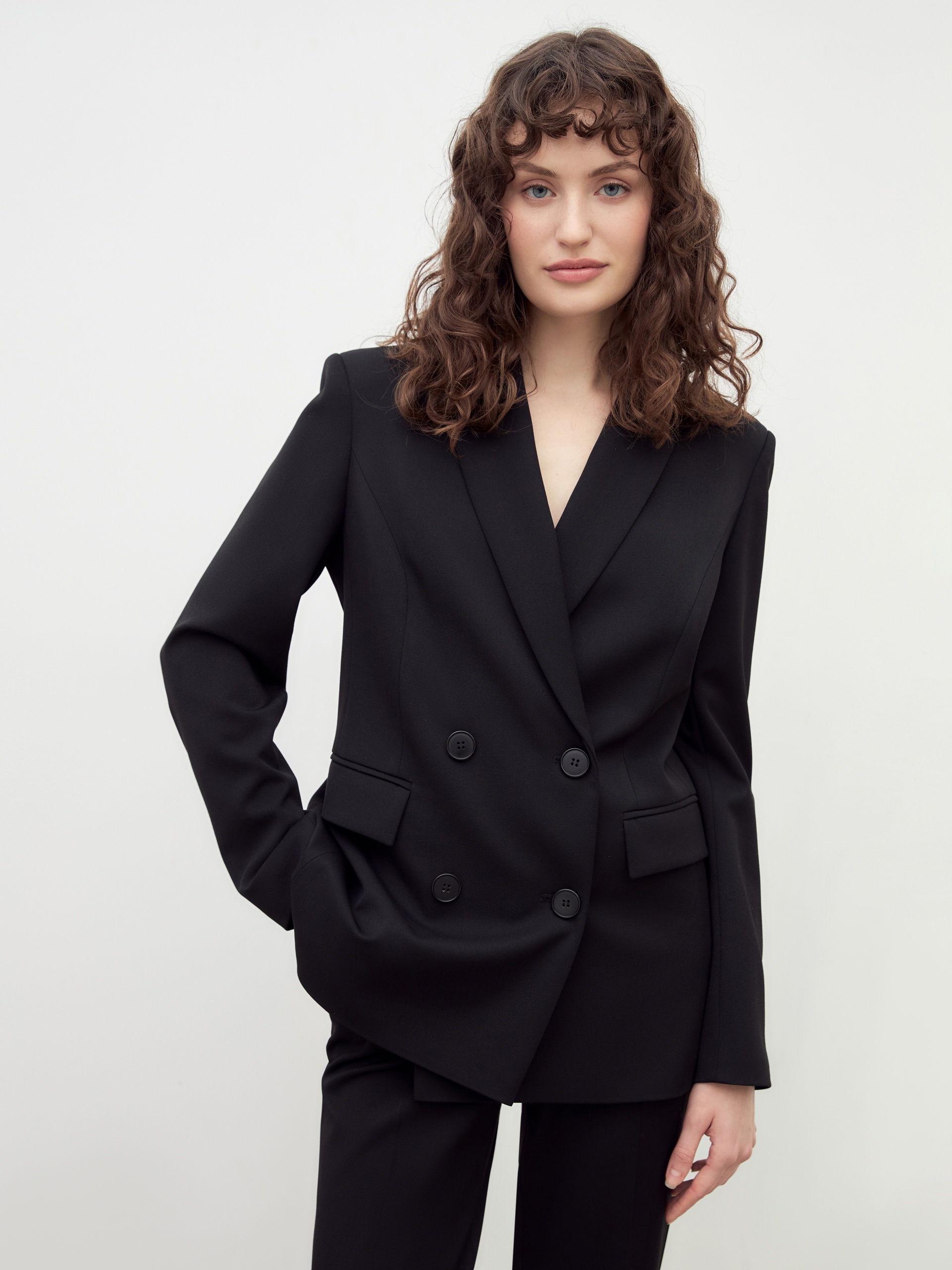 Классический двубортный жакет из костюмной ткани