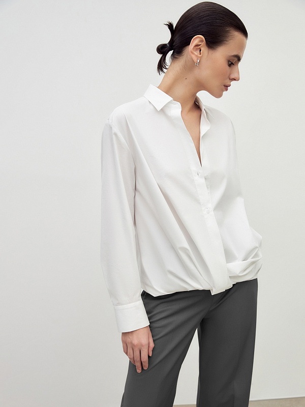 Белая блуза с акцентным узлом — элегантный элемент базового гардероба.