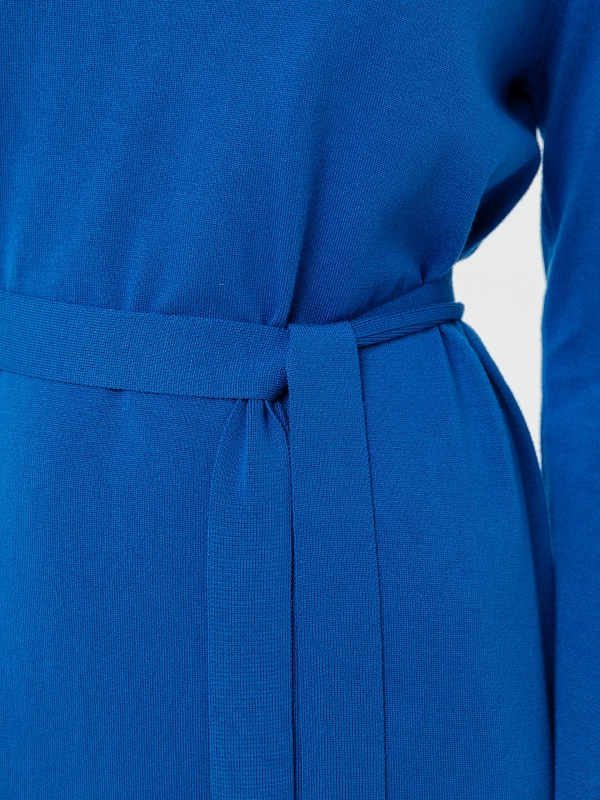 Базовое вязаное платье свободного силуэта для повседневного образа. В комплекте идет пояс из основной пряжи.