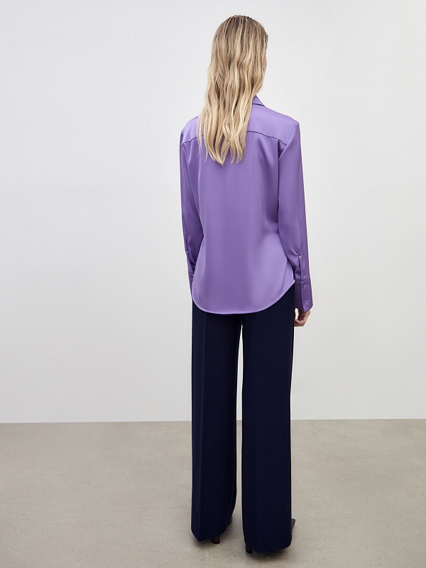 Приталенная блузка из сиреневой атласной ткани