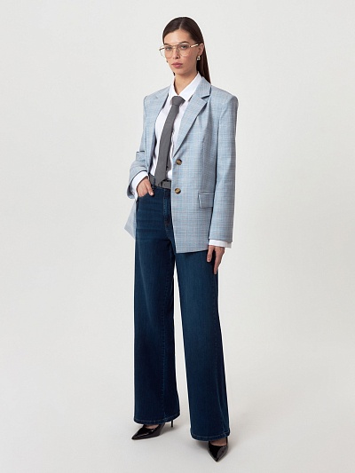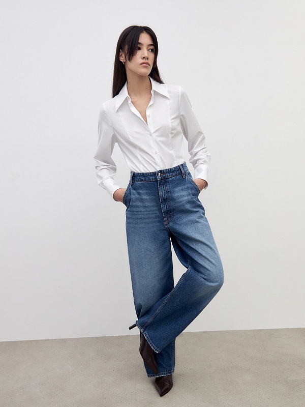 Широкие джинсы средней посадки из плотного хлопкового денима — новая модель сезона, незаменимая для создания комфортных, расслабленных образов.