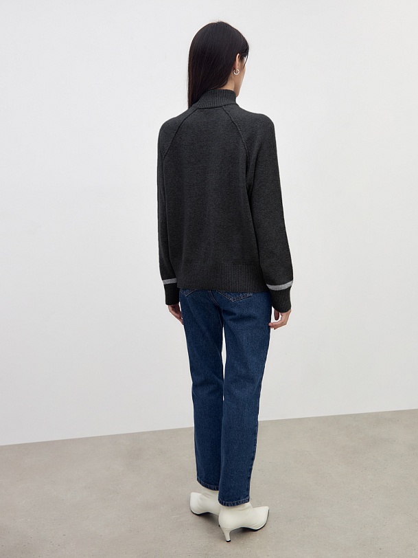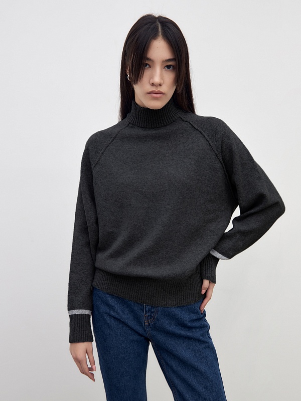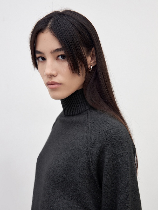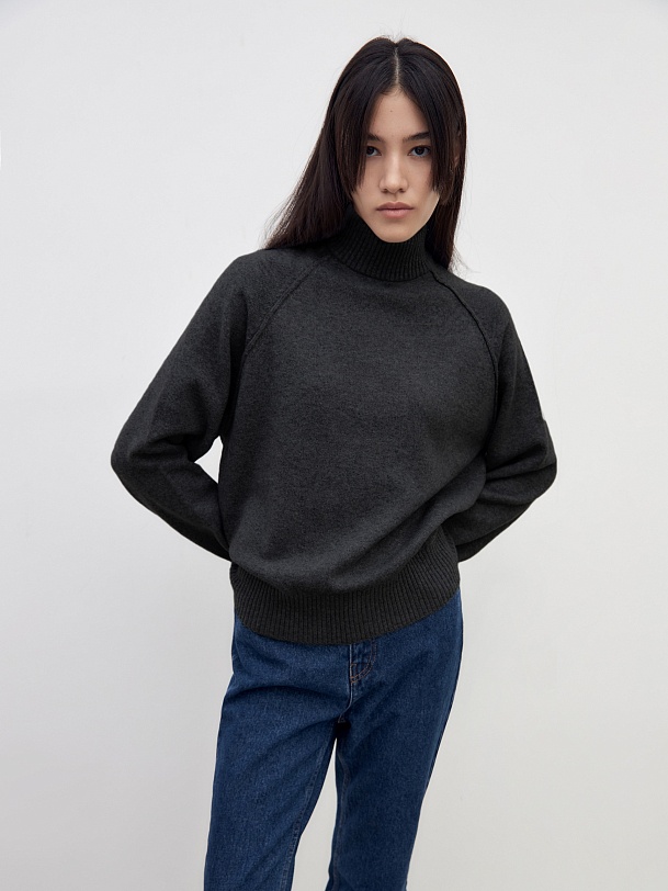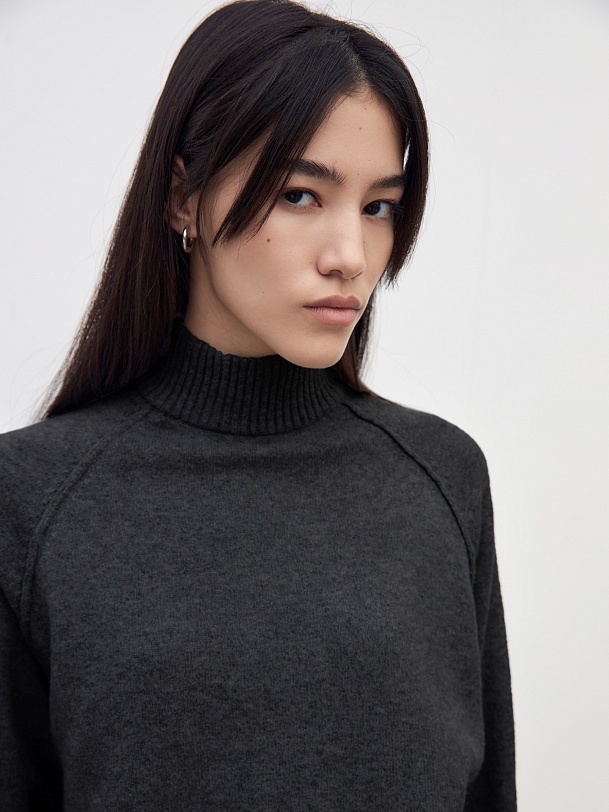 Уютный свитер свободного силуэта с рукавом-регланом и воротником стойкой. В смесовом составе пряжи есть волокна овечьей шерсти, что делает изделие более тёплым, шерсть не колется и не вызывает дискомфорта. Благодаря уникальной структуре овечьей шерсти она "дышит" - между волокнами располагаются особые воздушные полости, внутри которых циркулирует воздух, он помогает выводить лишнее тепло и влагу.