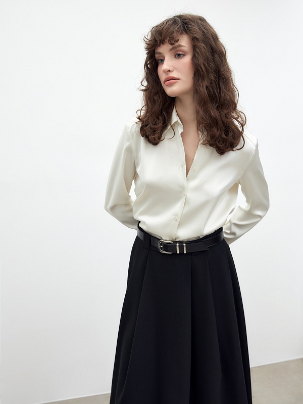 Приталенная блуза из атласной ткани